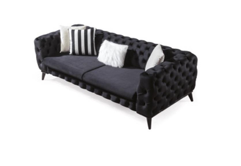 In nero come mostrato, questo set divano aggiunge un tocco di classe a qualsiasi ambiente, dal moderno al tradizionale. Sia che tu stia ricevendo ospiti per una cena elegante o ti stia rilassando con un buon libro, questi comodi e accoglienti divani e poltrona sono l'ideale. Posizionali insieme per creare una zona di conversazione accogliente o separali per dare risalto a diverse aree del tuo soggiorno. Investi in un arredo di qualità che unisce design esclusivo e funzionalità con il nostro set divano composto da divano a 3 posti, divano a 3 posti e poltrona nera, poltrona Chesterfield, mobili.
