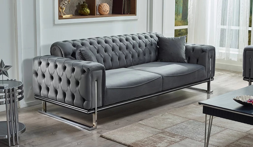 Divano grigio 3 posti Chesterfield lusso mobili imbottiti divano a tre posti | xlmobili.it