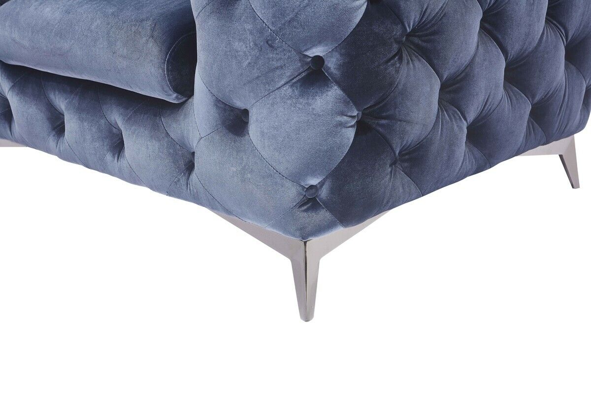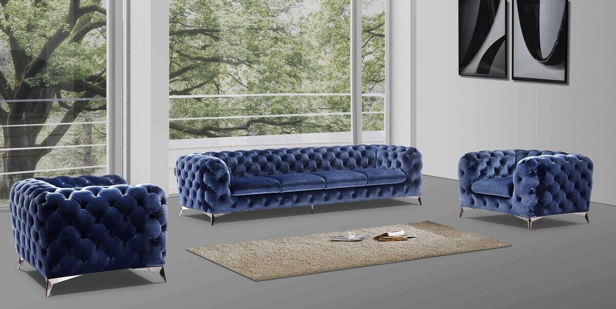 Sofà italiano 2 divani singoli Set divani imbottiti Chesterfield Nuovo 1+1 posto è un magnifico set di divani che unisce stile classico e comfort imbattibile. Con un design Chesterfield elegante e raffinato, questo set include due divani singoli imbottiti con tessuto in velluto premium, perfetti per arredare il tuo spazio living con gusto e classe. La struttura interna in legno massello garantisce robustezza e durabilità, mentre le molle offrono un'accogliente sospensione per momenti di relax indimenticabili. L'offerta è valida per il 1+1 posto, ideale per creare un'atmosfera accogliente e sofisticata in qualsiasi ambiente.
