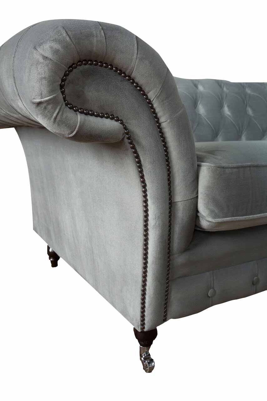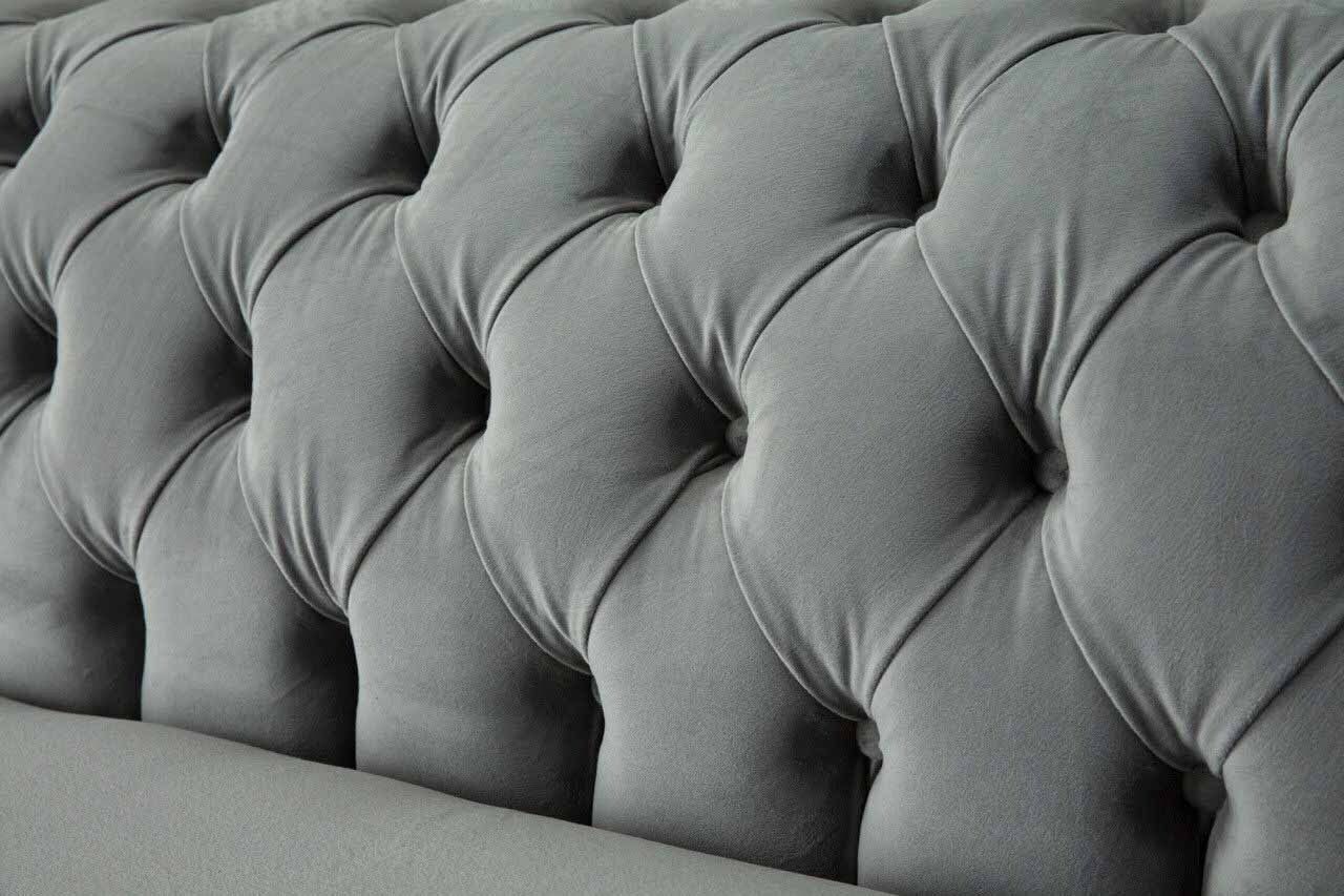 L'elegante Divano 4 posti Chesterfield imbottito in tessuto grigio è la soluzione perfetta per il tuo soggiorno. Con le sue dimensioni di ca. 245 x 80 x 90 cm, questo divano offre comfort e stile in egual misura. La struttura interna in legno massello assicura una base solida e resistente, mentre il tessuto di alta qualità garantisce una piacevole sensazione al tatto. Con un'altezza seduta di ca. 42 cm e una profondità seduta di ca. 52 cm, questo divano offre un supporto ottimale per lunghe sedute.