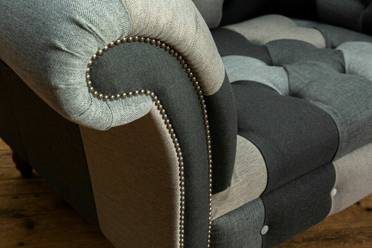 La poltrona di lusso monoposto Grigio-blu Chesterfield è un'opera d'arte del design che unisce comfort e stile in un unico elemento di arredamento. Con dimensioni di ca. 150 x 98 x 79 cm, questa poltrona di alta qualità offre un posto accogliente e chic per rilassarsi. Il materiale in tessuto garantisce una piacevole sensazione al tatto e una resistenza duratura, mentre la struttura interna in legno massello e il molleggio a molla assicurano solidità e comfort ottimale.