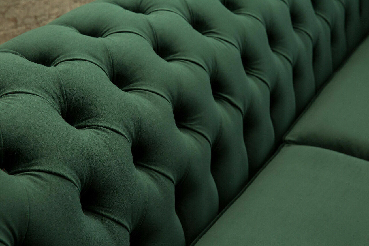 Con il nostro Divano Chesterfield in tessuto verde in pelle, potrai portare un tocco di eleganza e comfort alla tua casa. Questo divano di qualità superiore è imbottito con grandi cuscini per assicurarti un relax totale dopo una lunga giornata di lavoro. Con una lunghezza di 265 cm di XXL, avrai spazio più che sufficiente per rilassarti o intrattenere ospiti con stile. La struttura interna in legno massello e il molleggio a molla assicurano solidità e durata nel tempo, mentre il tessuto di alta qualità conferisce un tocco di modernità al design classico del divano Chesterfield.