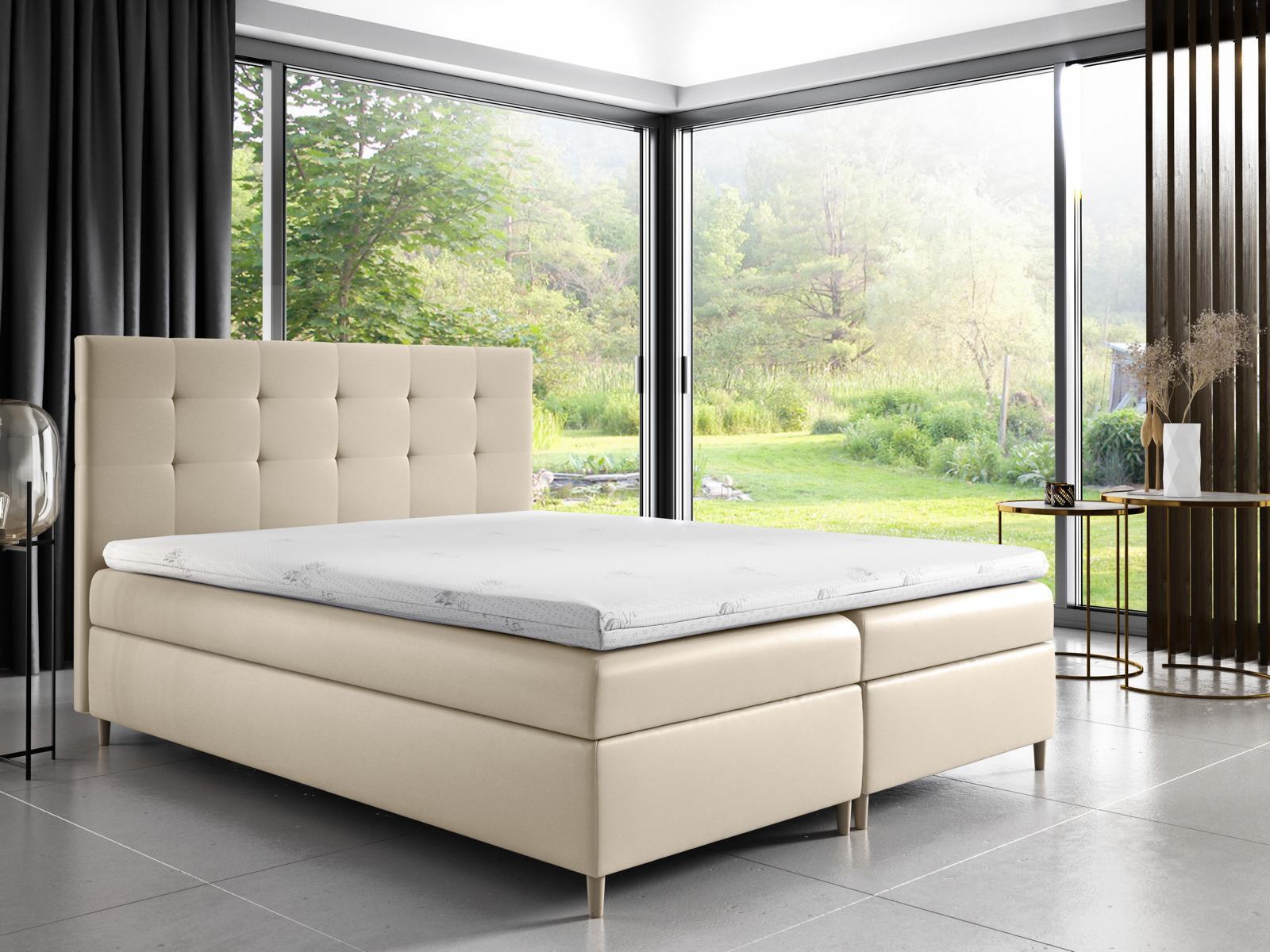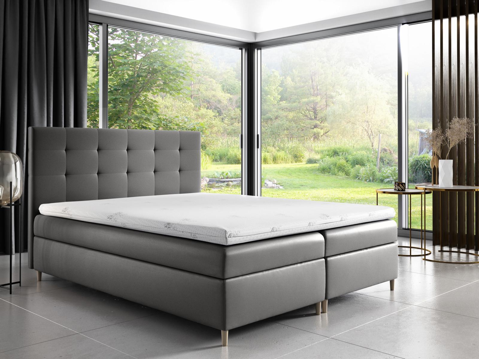 Il Doppio Hotel Moderno Letto offre un'elegante combinazione di comfort e funzionalità per la tua camera da letto. Con una superficie di riposo di circa 180 x 200 cm e una struttura solida, questo letto boxspring con contenitore garantisce un sonno riposante e un'ampia capacità di stoccaggio. Il materasso in molle Bonell e il materasso principale medio rigido H3 con schiuma altamente flessibile assicurano un supporto ottimale per la colonna vertebrale, mentre il topper in schiuma altamente flessibile aggiunge un ulteriore livello di comfort. Le gambe in legno conferiscono stabilità e stile al letto, completando l'aspetto moderno e funzionale.