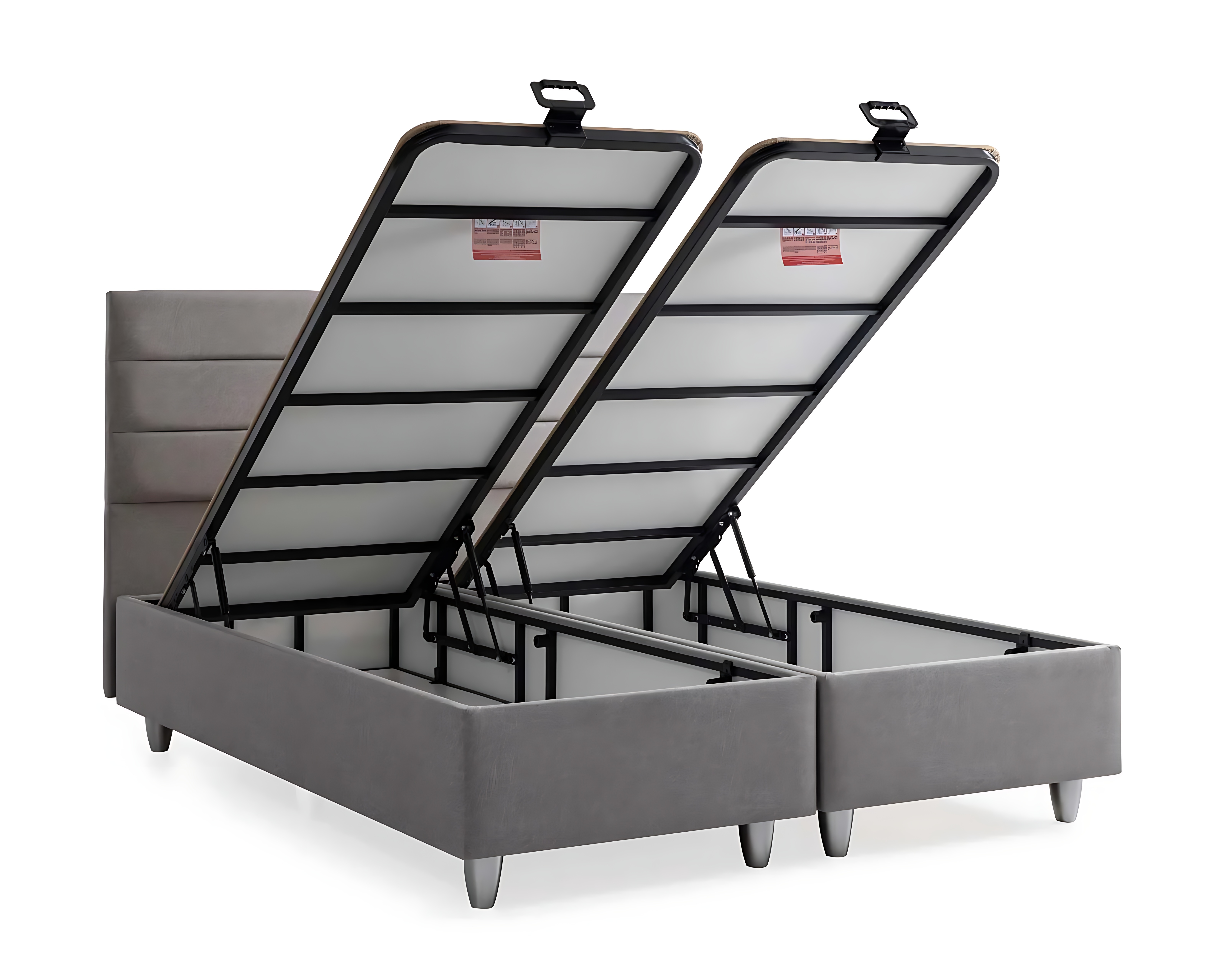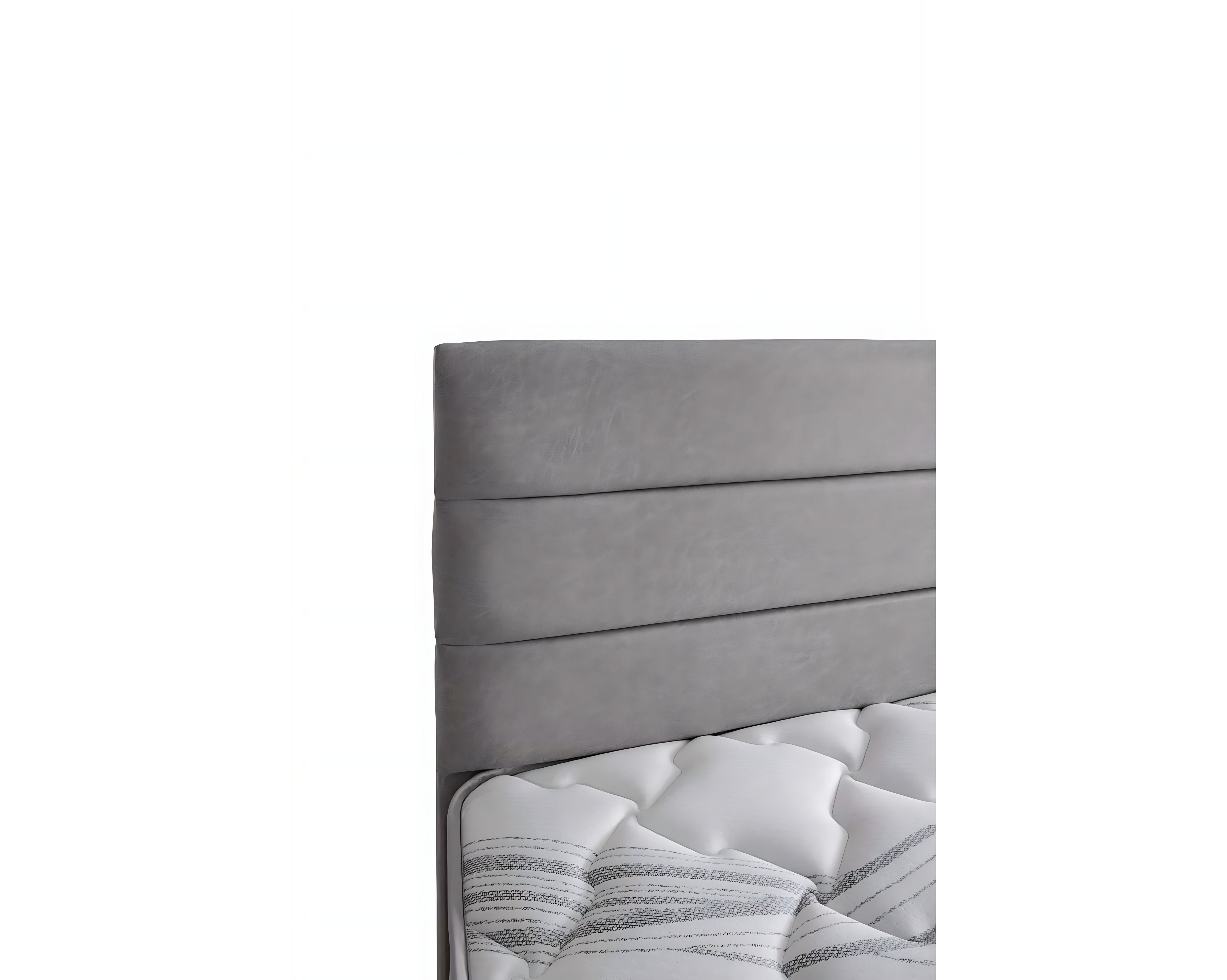 Elegante letto grigio con materasso in tessuto e legno