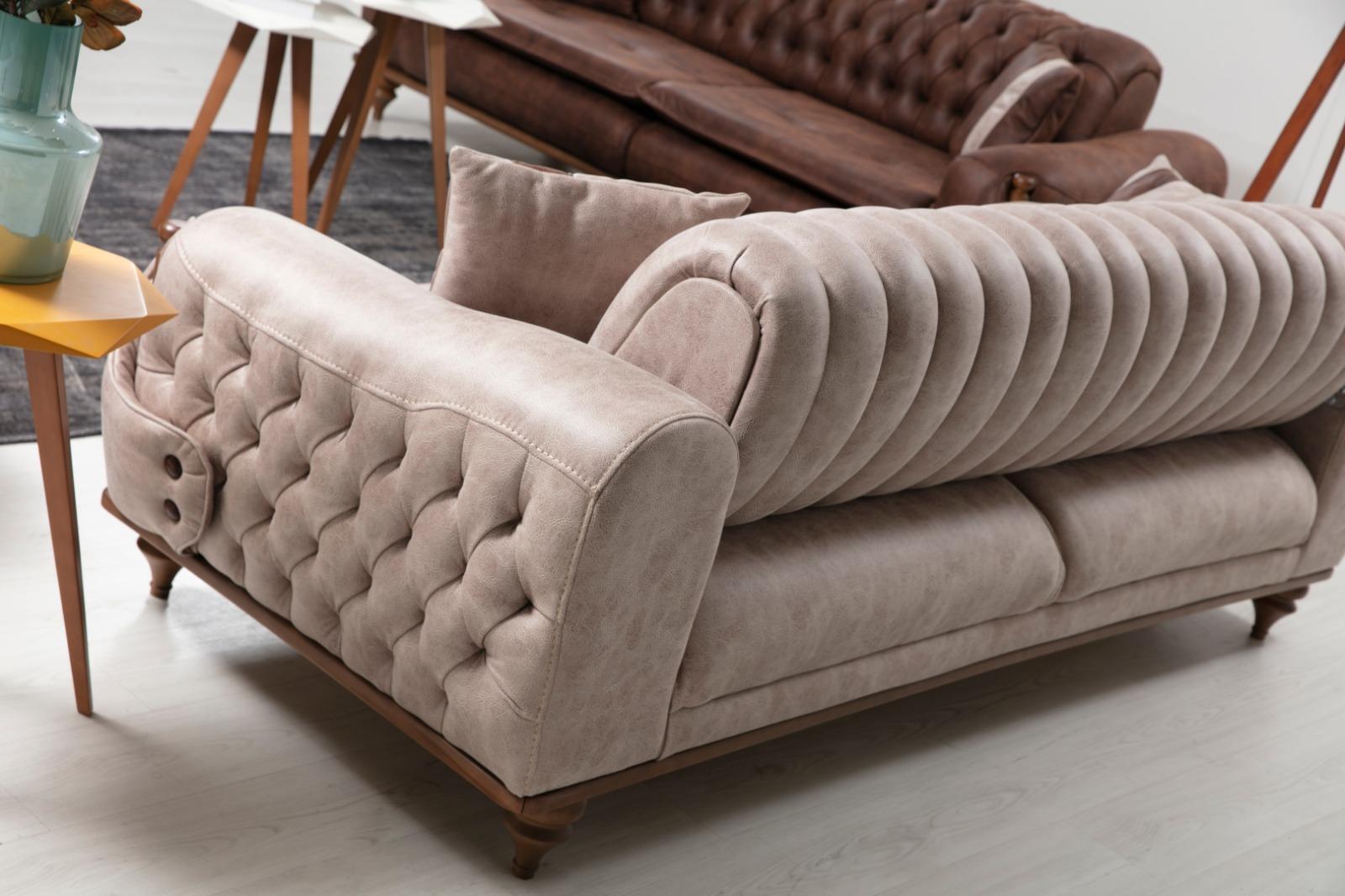 Beige divano Chesterfield a tre posti in stile capitonné tappezzeria tessile divano in stoffa