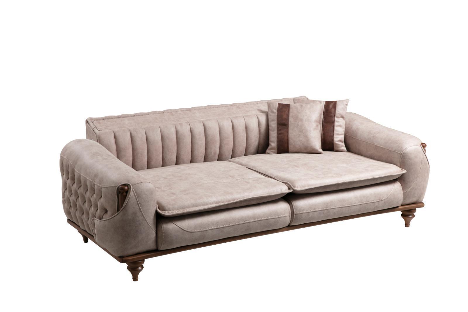 Il divano beige Chesterfield a tre posti in stile capitonné con tappezzeria tessile è l'aggiunta perfetta per il tuo spazio abitativo. Con dimensioni generose di circa 240 x 90 x 85 cm, questo elegante divano offre comfort e stile ineguagliabili. La sua lunghezza di circa 240 cm fornisce ampio spazio per rilassarsi, mentre l'altezza di circa 85 cm e l'altezza seduta di circa 44 cm assicurano un supporto ottimale. Realizzato in legno di alta qualità con rivestimento tessile, questo divano è robusto e durevole, perfetto per l'uso quotidiano.