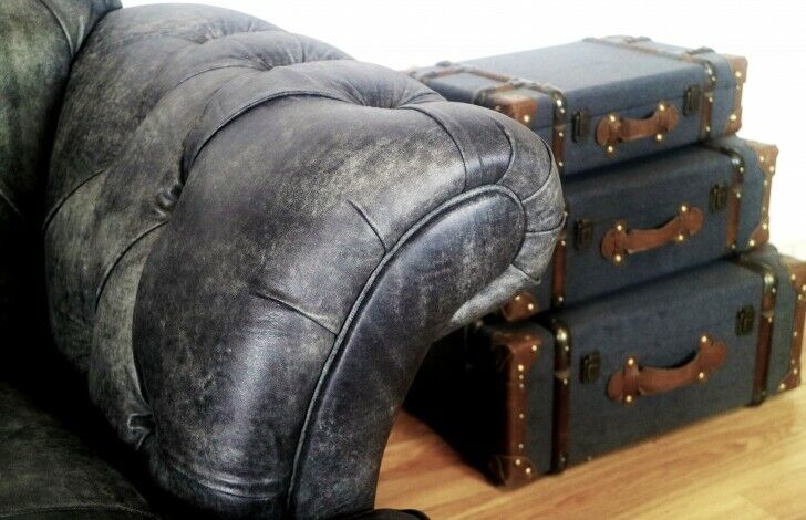 Chesterfield Divano XXL Big in pelle Nero 3 posti Stile vintage