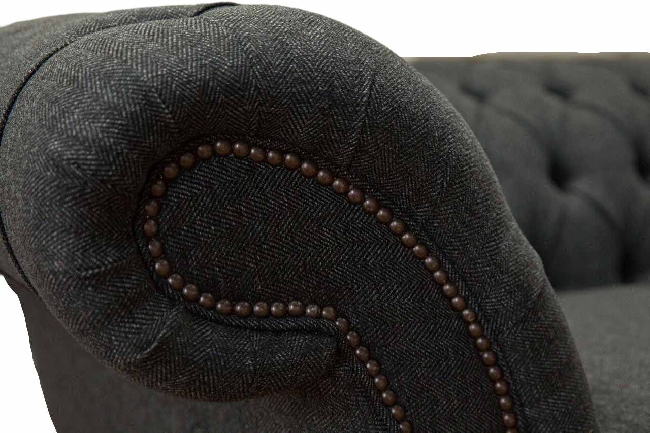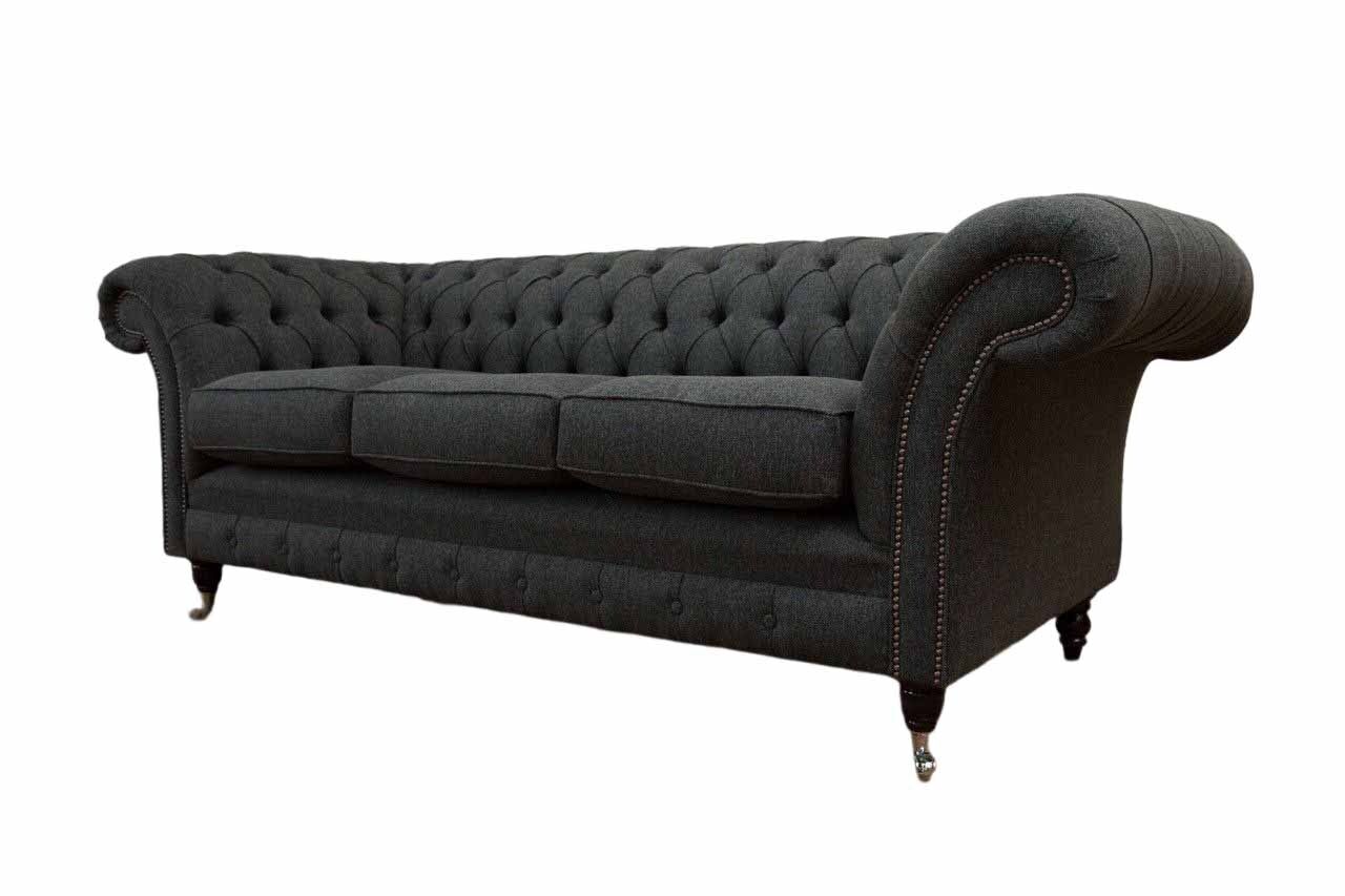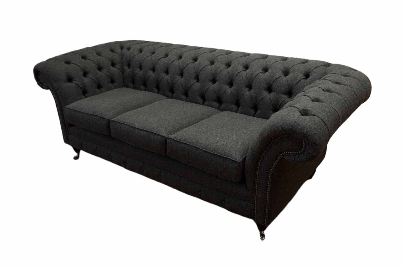 Chesterfield Tessuto Imbottito Design Divano Divano di Lusso Grigio 3 Posti