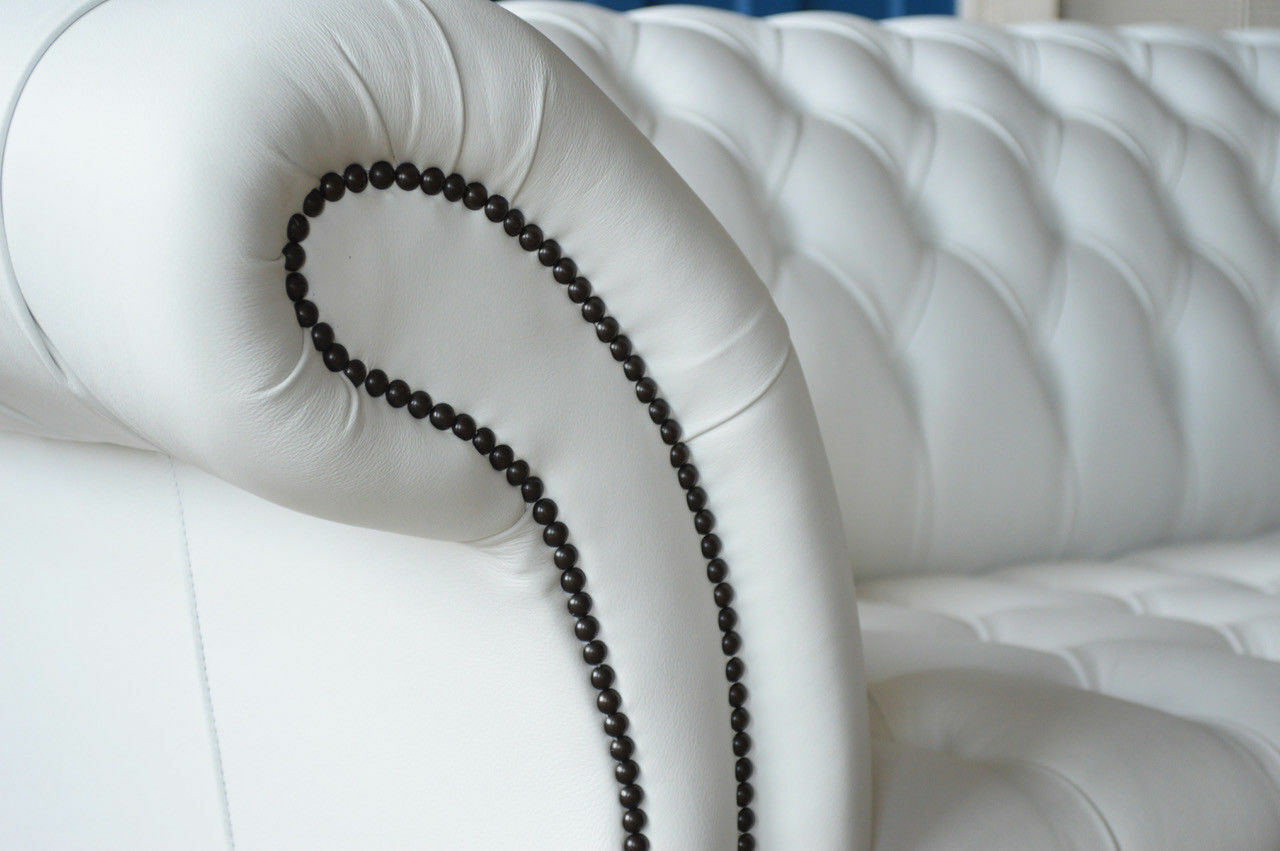 Il Classico divano Chesterfield a 4 posti in velluto e pelle bianca design grande è l'incarnazione dell'eleganza e del comfort. Con le sue generose dimensioni di ca. 265 x 98 x 79 cm, questo divano offre ampio spazio per accogliere comodamente fino a quattro persone. Realizzato con una struttura interna in legno massello e una sottostruttura a molle, garantisce resistenza e durata nel tempo. Il rivestimento in pelle sintetica premium è disponibile in una vasta gamma di colori per soddisfare ogni preferenza, garantendo al contempo una pulizia agevole e resistenza all'usura. La profondità seduta di circa 64 cm e l'altezza seduta di circa 42 cm assicurano un comfort ottimale per lunghe ore di relax o intrattenimento.