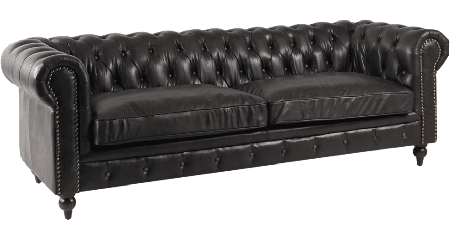 Sofà Chesterfield 3 posti in pelle-fibra in legno massello di stile moderno di lusso classico.