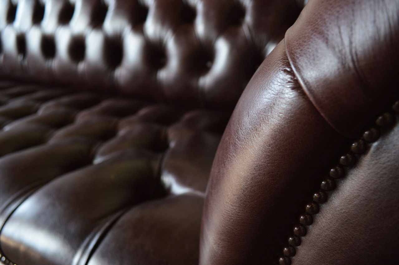 Divano Chesterfield divano imbottito in pelle marrone designer.