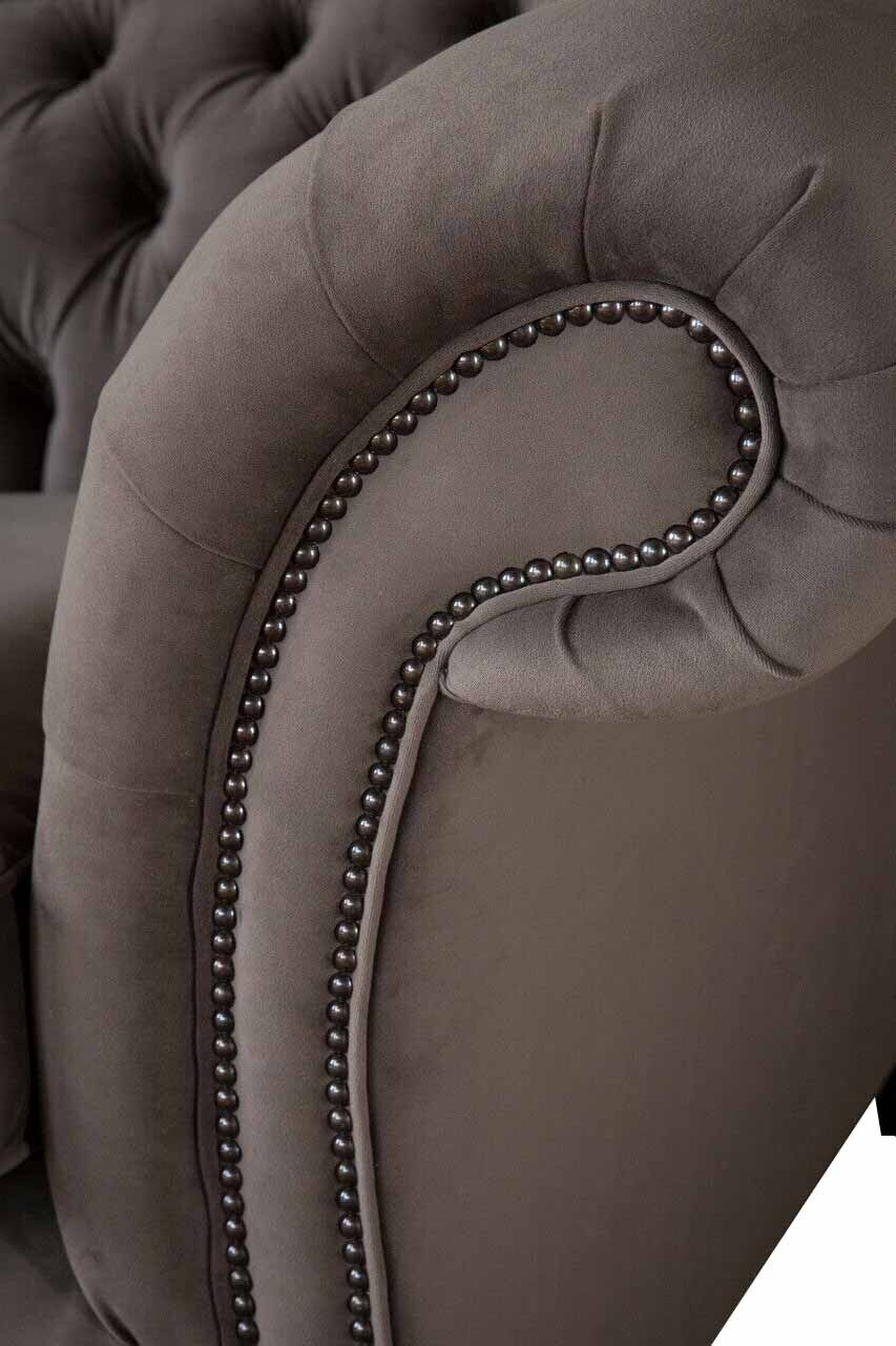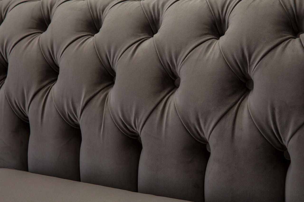 Sofà imbottito divano 3 posti in tessuto Chesterfield grigio nuovo