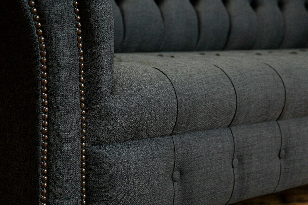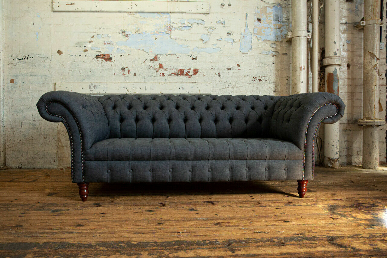 Sofà in tessuto grigio Chesterfield grigio a 3 posti Divano soggiorno di lusso