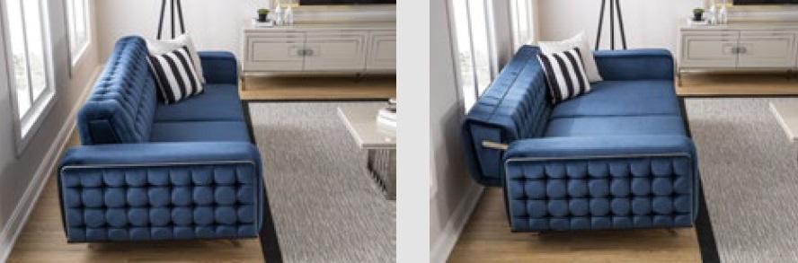Classico divano Chesterfield a tre posti in blu, di lusso.