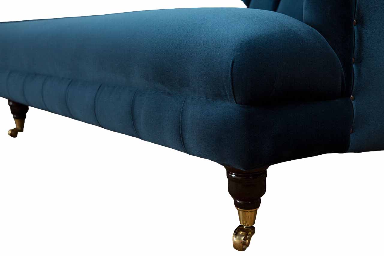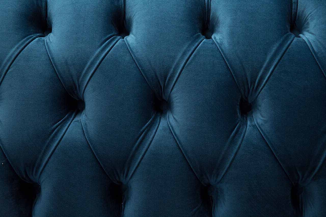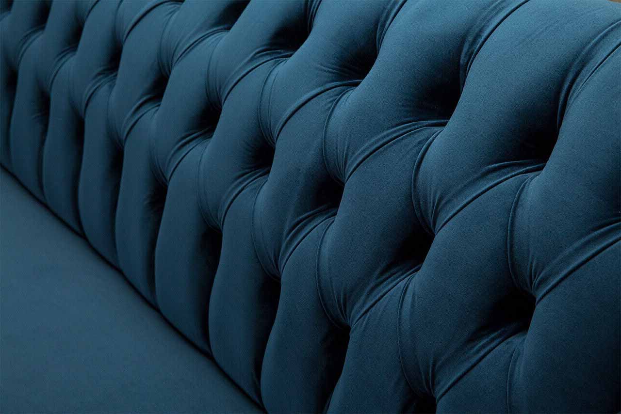 Sofà design di lusso in stile Chesterfield con quattro posti a sedere nel colore blu.