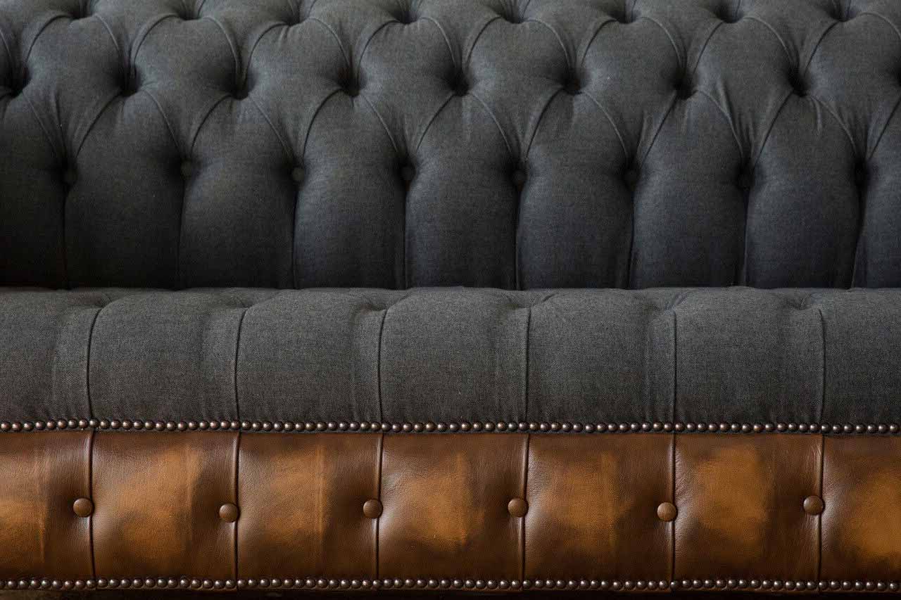 Design Divano Nero 3 Posti Chesterfield in Tessuto - Nuovo Sofà Imbottito