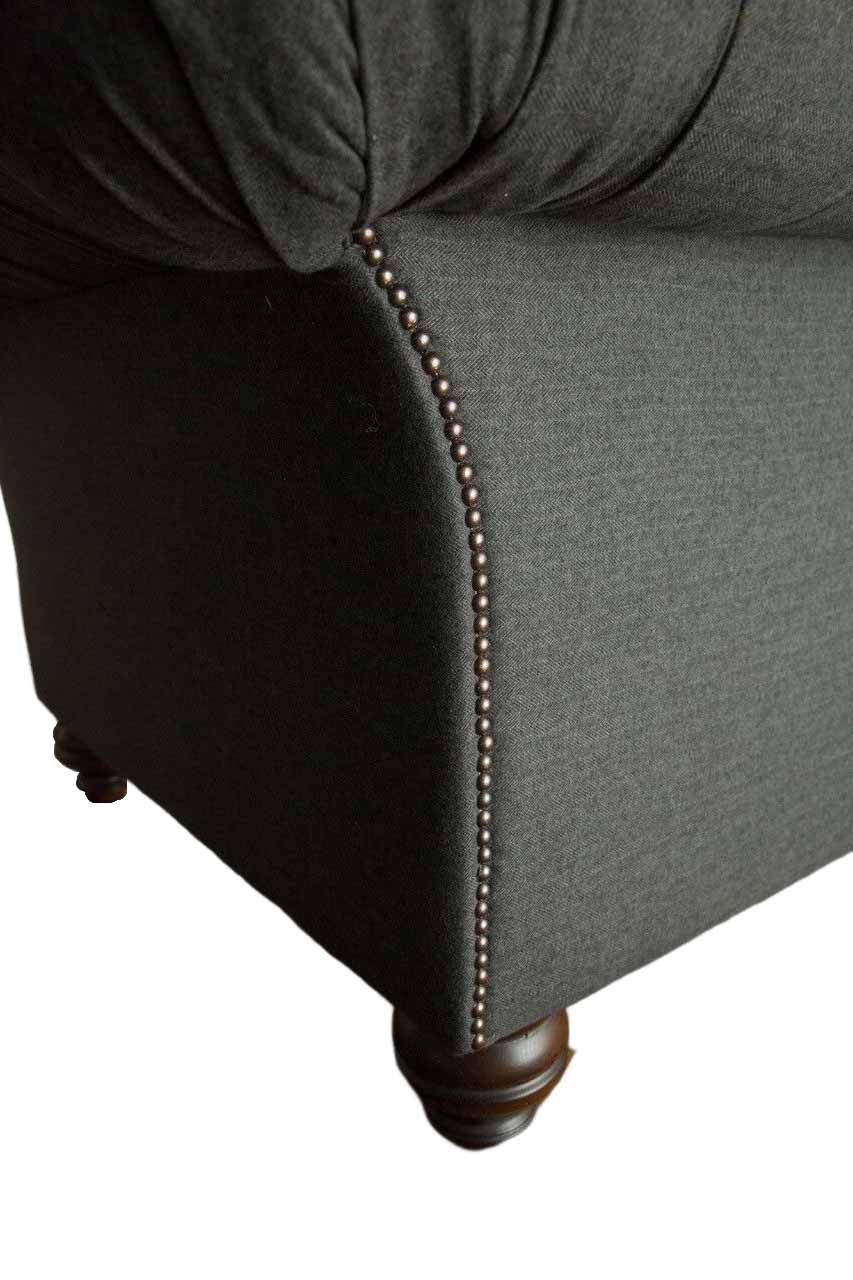 Il design Divano Nero 3 Posti Chesterfield in Tessuto - Nuovo Sofà Imbottito è un'elegante e confortevole aggiunta al tuo spazio abitativo. Con le sue dimensioni di 230 x 80 x 90 cm, questo divano a tre posti offre un'ampia area di seduta per il relax e il comfort. La struttura interna in legno naturale garantisce robustezza e durata nel tempo. L'elevata altezza della seduta a 42 cm e la profondità di seduta di 52 cm assicurano un sostegno ottimale. Realizzato in tessuto di alta qualità, puoi godere di una vasta scelta di colori per adattarlo al meglio al tuo arredamento, con la possibilità di personalizzazioni aggiuntive come pelle pieno fiore o tessuti premium su richiesta.