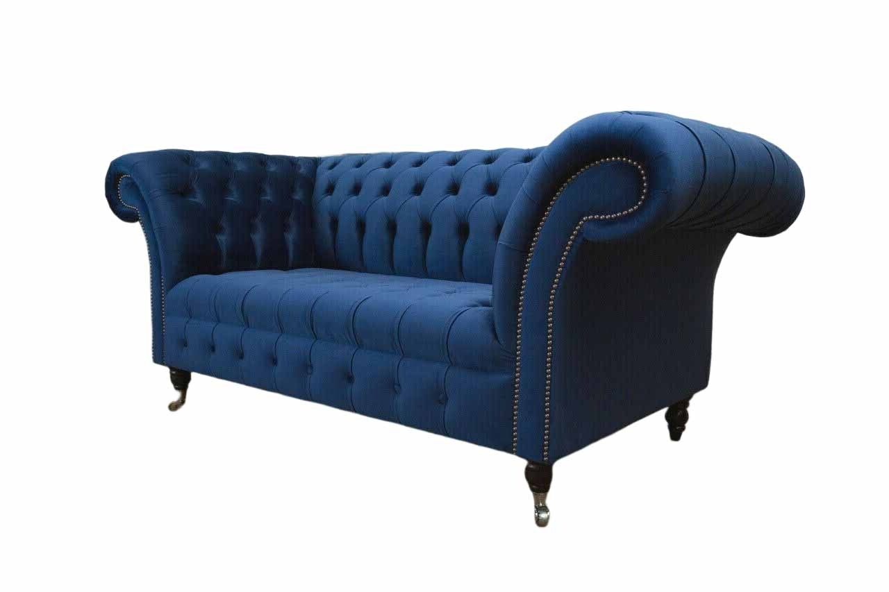 Mobili da ufficio Chesterfield in stile inglese, divano poltrona 2 posti in velluto blu reale.