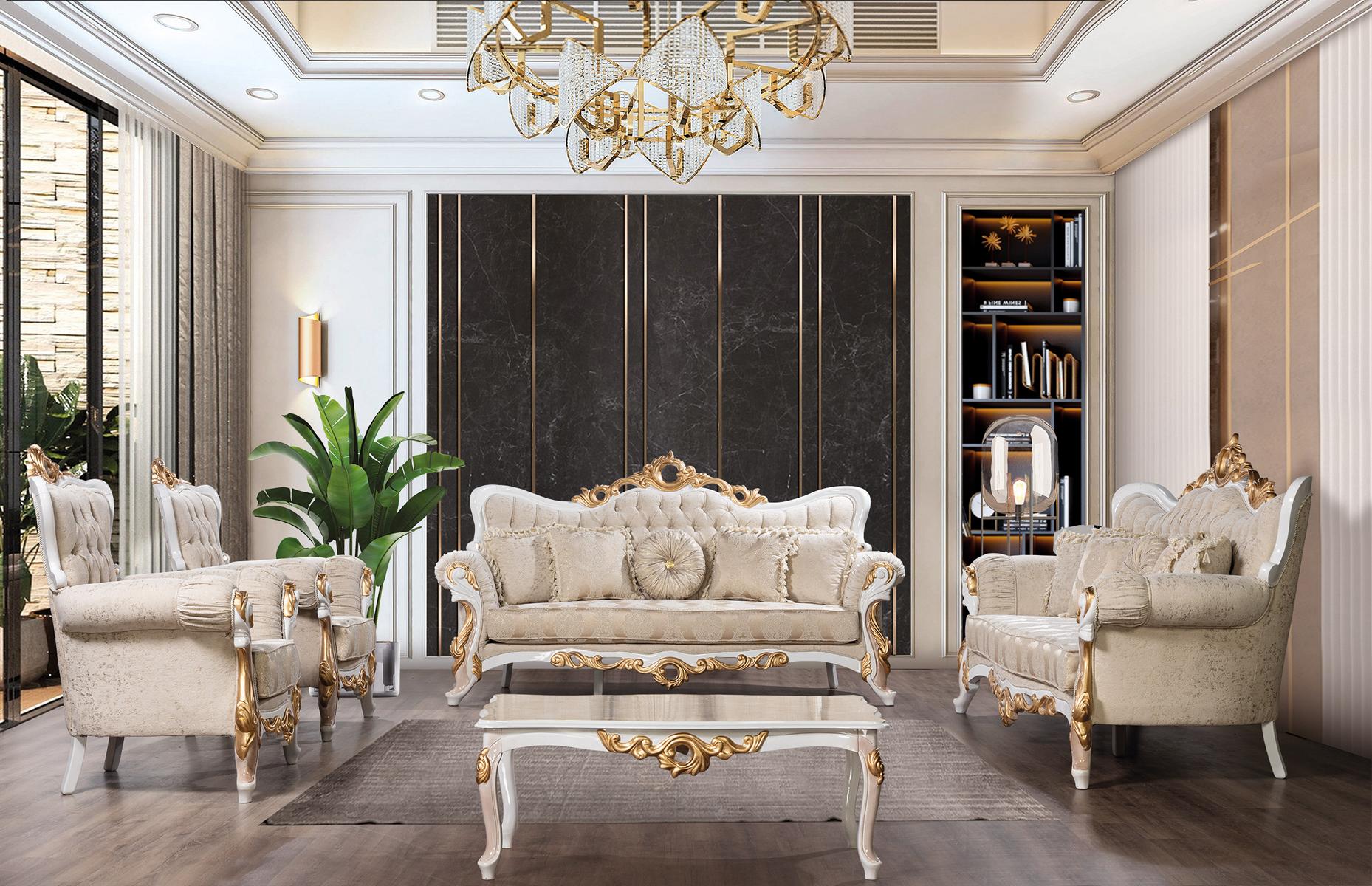 Divano 3311 Set di sedili Design Divano Imbottito Divani Classici Tavolino è un elegante set di arredi per il salotto che porterà stile e comfort alla tua casa. Il set include due divani a tre posti, due poltrone e un tavolino, tutti realizzati con cura dei dettagli e materiali di alta qualità. La struttura in legno garantisce resistenza e durata nel tempo, mentre i morbidi cuscini imbottiti offrono un supporto confortevole. Con il design classico e raffinato, questo set si adatta facilmente a diversi stili di arredamento, aggiungendo un tocco di eleganza all'ambiente.