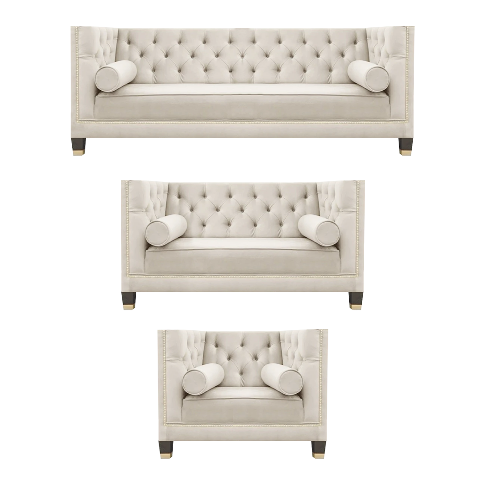 Il set di divani in tessuto soggiorno lusso 3+2+1 arredamento Chesterfield è l'elegante soluzione per completare il tuo spazio living con stile e comfort senza pari. Con un design raffinato e curato nei minimi dettagli, questo set si compone di un divano a 3 posti, un divano a 2 posti e una poltrona, perfetto per accogliere familiari e ospiti in un ambiente accogliente e di classe. La struttura interna in legno massello e il nucleo a molle garantiscono resistenza e durata nel tempo, mentre le opzioni di rivestimento in tessuto premium o in pelle bovina italiana offrono un tocco di lusso e personalizzazione.