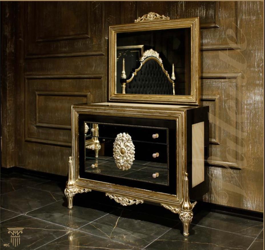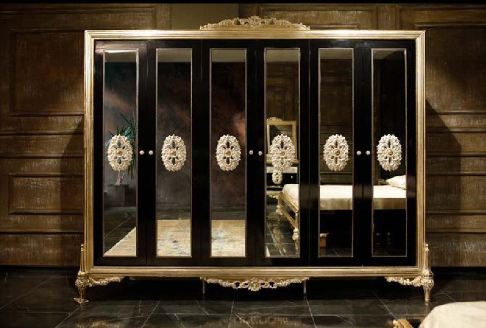 Set da camera da letto nero di lusso: letto, 2 comodini, cassettiera, armadio.