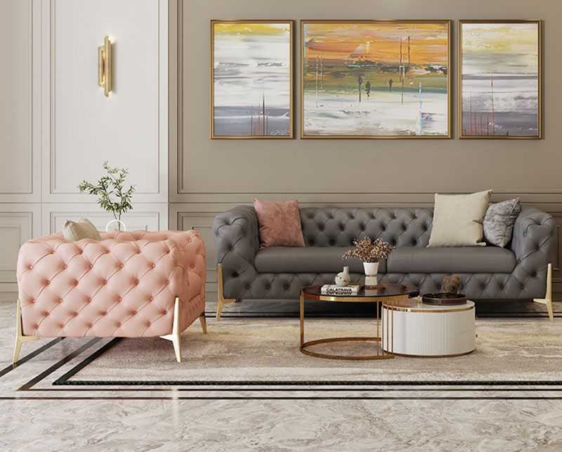 Per chi cerca un tocco di lusso, è possibile optare per la pelle vera premium di origine italiana, con un raffinato spessore fino a circa 2,50 mm. Altrimenti, per un'abbinata pratica ed economica, la pelle sintetica premium è offerta senza sovrapprezzo, assicurando comunque un'estetica elegante. Ideale per momenti di relax o per ospitare amici e famiglia, il set Chesterfield diventa protagonista in qualsiasi arredamento, dal moderno al classico. La seduta imbottita garantisce il massimo comfort, rendendo il set perfetto sia per affascinanti serate di conversazione che per giornate trascorse in totale relax. Scegliete l’eccellenza e l'eleganza senza pari per trasformare il vostro soggiorno.