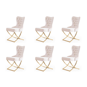 6 poltrone Chesterfield con seduta in tessuto imbottita, sedie da pranzo di design.