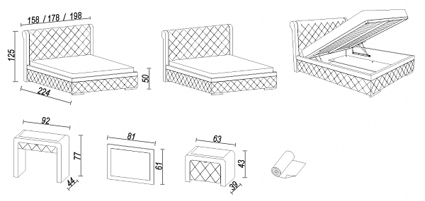 Scelta delle dimensioni 120x200cm, 140x200cm, 160x200cm, 180x200cm