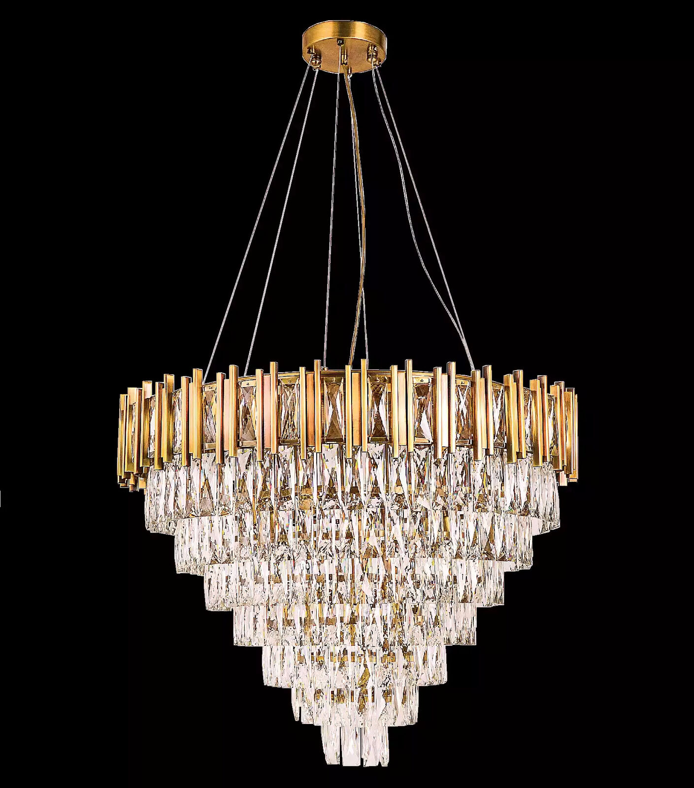 Questo lampadario a soffitto è ideale per arricchire l'arredamento di saloni, sale da pranzo o camere da letto, conferendo un tocco di lusso e classe. Grazie alla combinazione di metallo e cristallo, questo lampadario aggiunge un'atmosfera regale e sofisticata a qualsiasi spazio. Ideale per spazi ampi con soffitti alti, il design imponente di questo lampadario fa risaltare ogni ambiente e crea un'illuminazione accattivante. Perfetto per chi cerca un lampadario di alta qualità che combini stile, funzionalità e eleganza.
