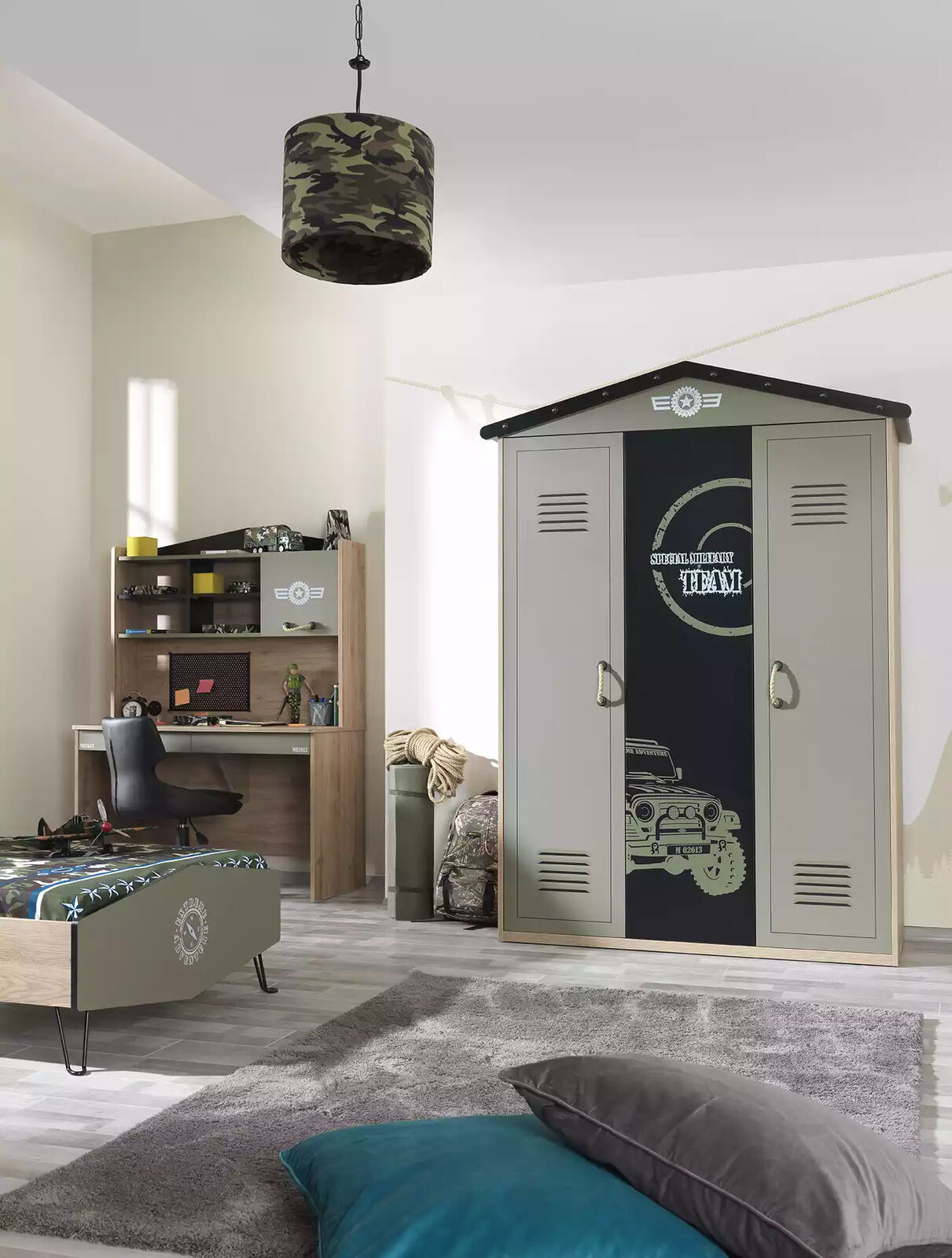Armadio in legno di lusso con 3 ante in legno verde.