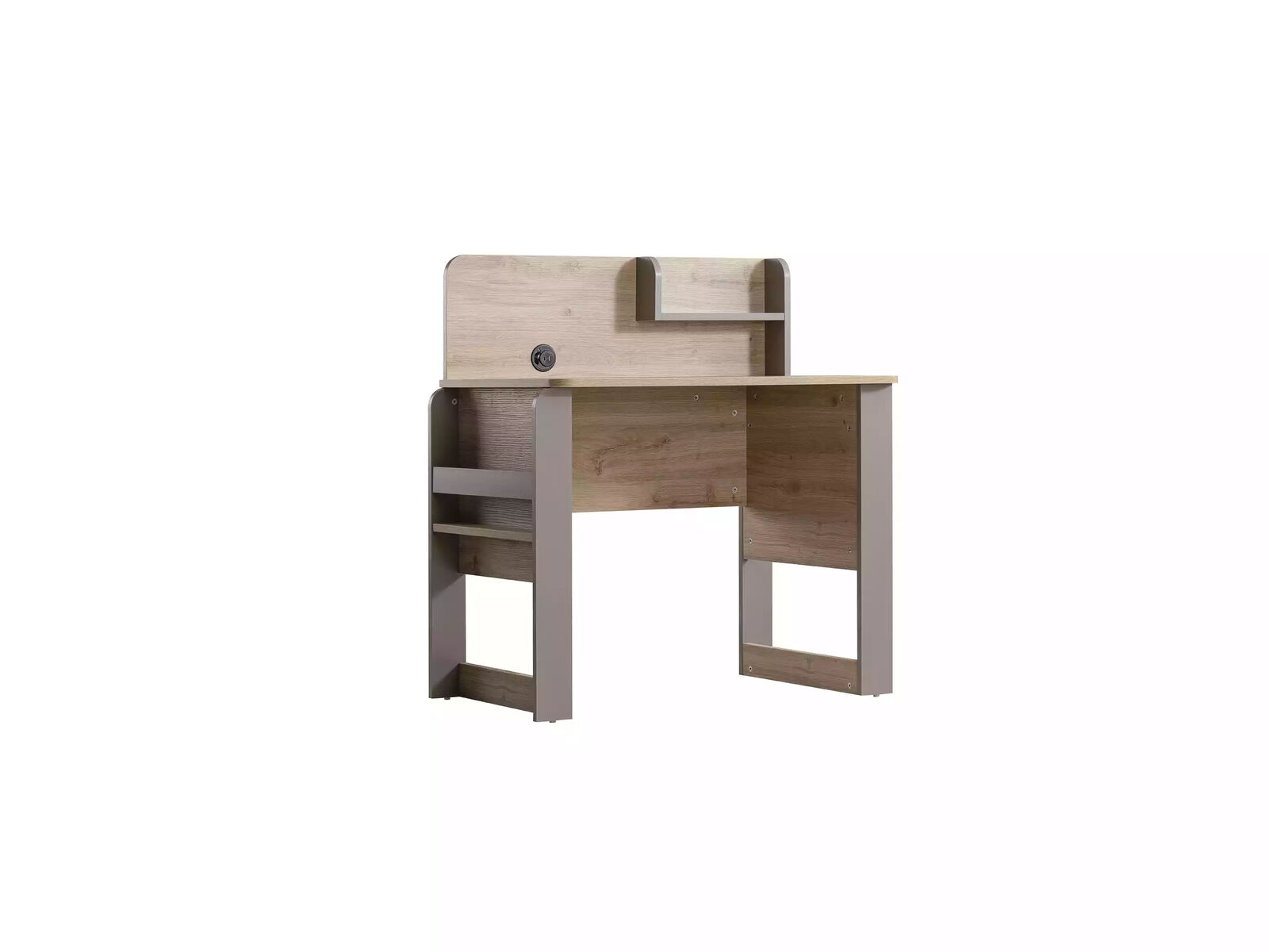 Set da scrivania in legno marrone con tavolo e scaffale per la camera dei bambini.