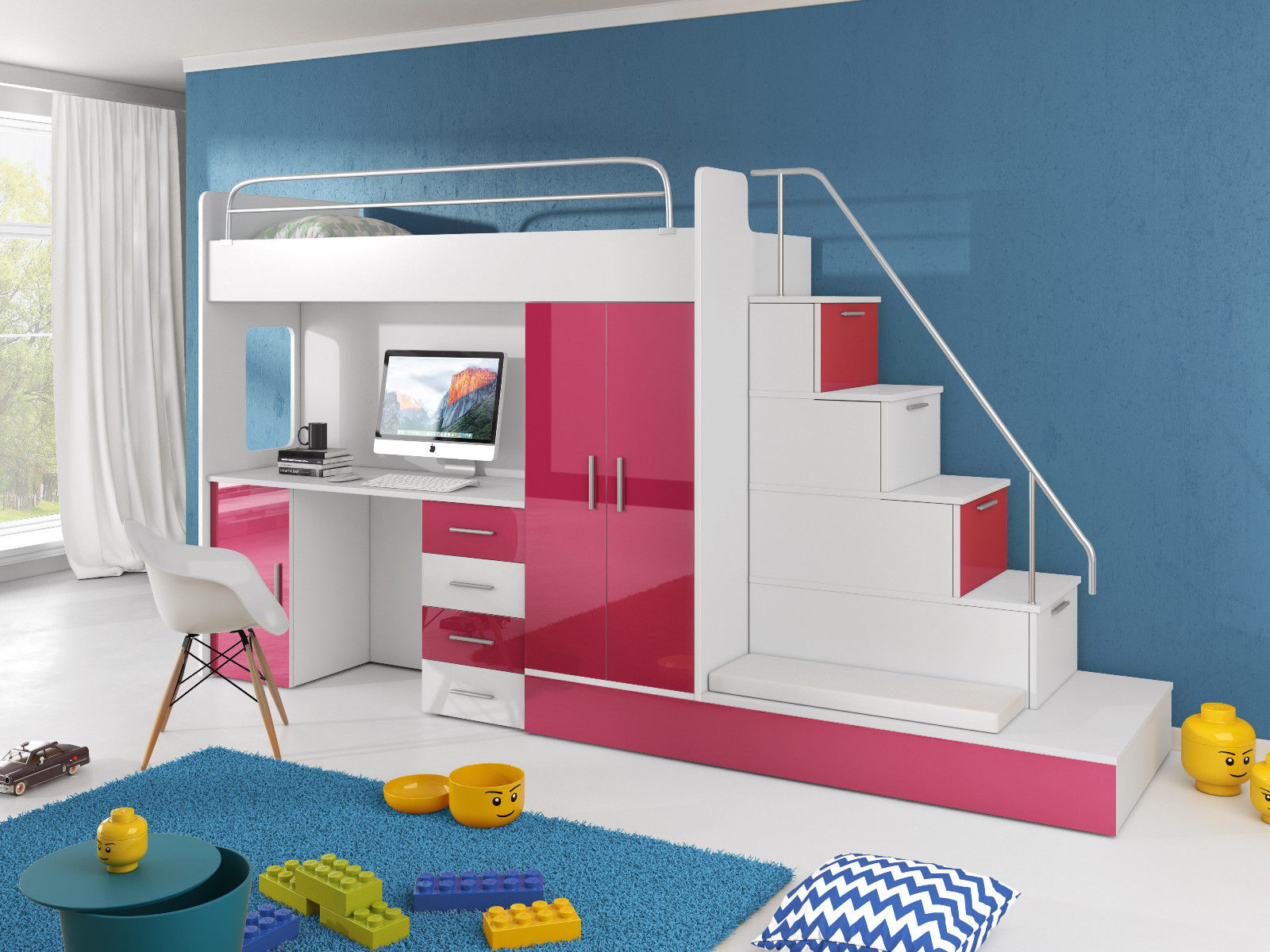 Stanza per ragazzi Letto a castello Armadio Scrivania RAJ 5