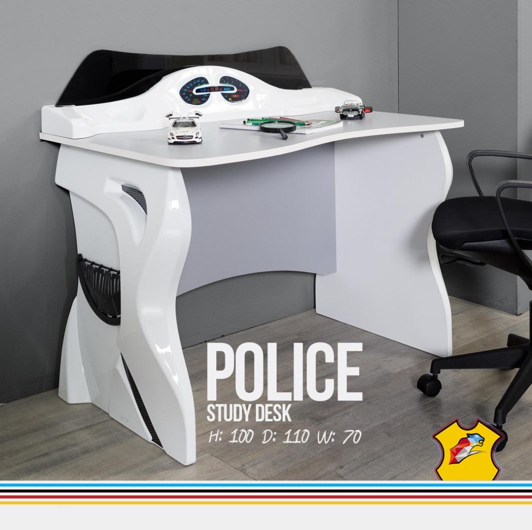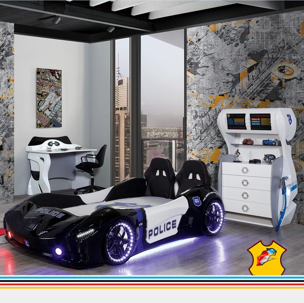 Auto della polizia Camera da letto dei bambini Lettino per bambini Comò Scrivania 3 pezzi
