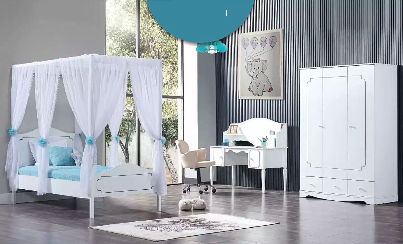 Stanze per bambini Camera da letto Camera da letto per ragazzi Camera completa Letto a baldacchino Bianco