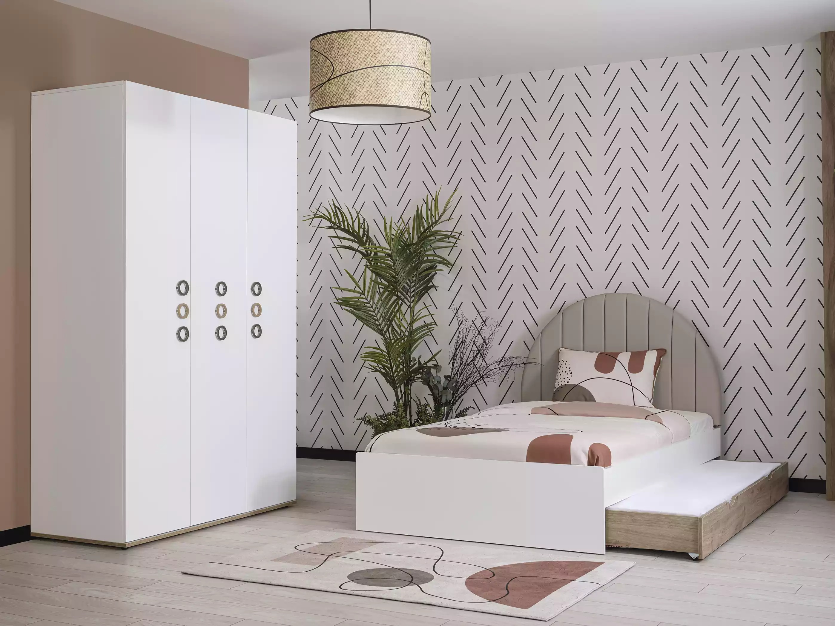 Questo set di mobili per bambini è ideale per creare un'area dedicata alla cura e al relax dei più piccoli in modo organizzato e accogliente. Grazie alle dimensioni adatte ai bambini e alla robusta costruzione in legno, questi mobili offrono funzionalità e durata nel tempo. Potrai personalizzare la camera dei tuoi figli con un look fresco e luminoso, ottimizzando lo spazio e facilitando la loro routine quotidiana. Con la camera da letto per bambini Cornice letto completa, regala ai tuoi piccoli un ambiente sicuro e pieno di allegria per sogni sereni e giochi indimenticabili.