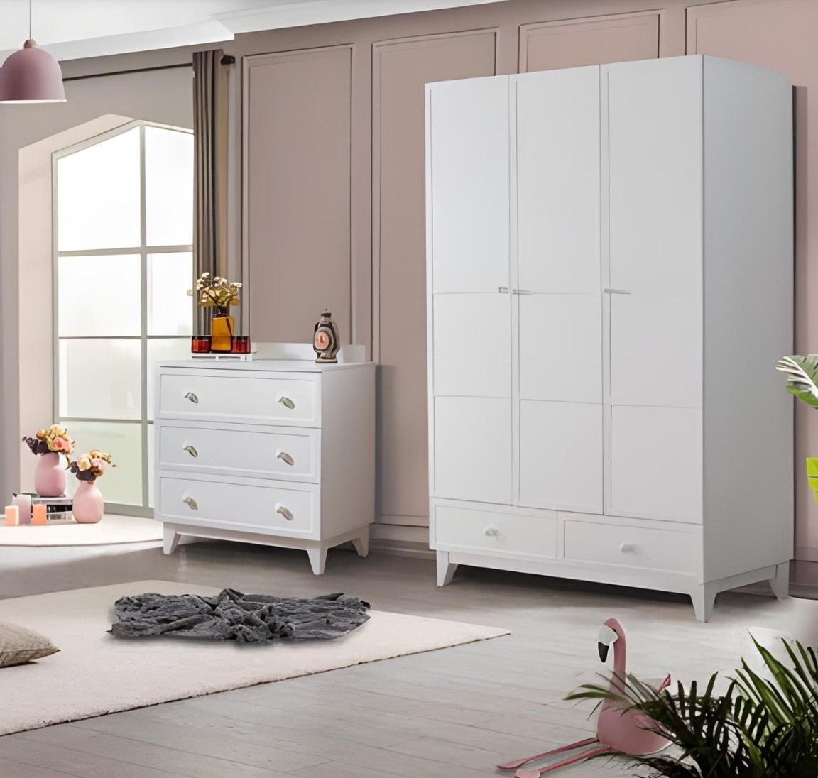 Questo set di mobili per camera completa non solo aggiunge stile alla stanza dei tuoi bambini, ma offre anche soluzioni di stoccaggio efficienti per mantenere l'ambiente ordinato e organizzato. La finitura bianca luminosa si adatta facilmente a diversi stili di arredamento e colori delle pareti, garantendo un look elegante e accogliente. Il legno di alta qualità e i dettagli curati assicurano resistenza e durata nel tempo, offrendo un investimento sicuro per la camera dei tuoi piccoli. Con il letto spazioso e comodo, l'armadio capiente e la cassettiera funzionale, i tuoi bambini potranno godere di un ambiente accogliente e ben organizzato per giocare, riposare e rilassarsi.