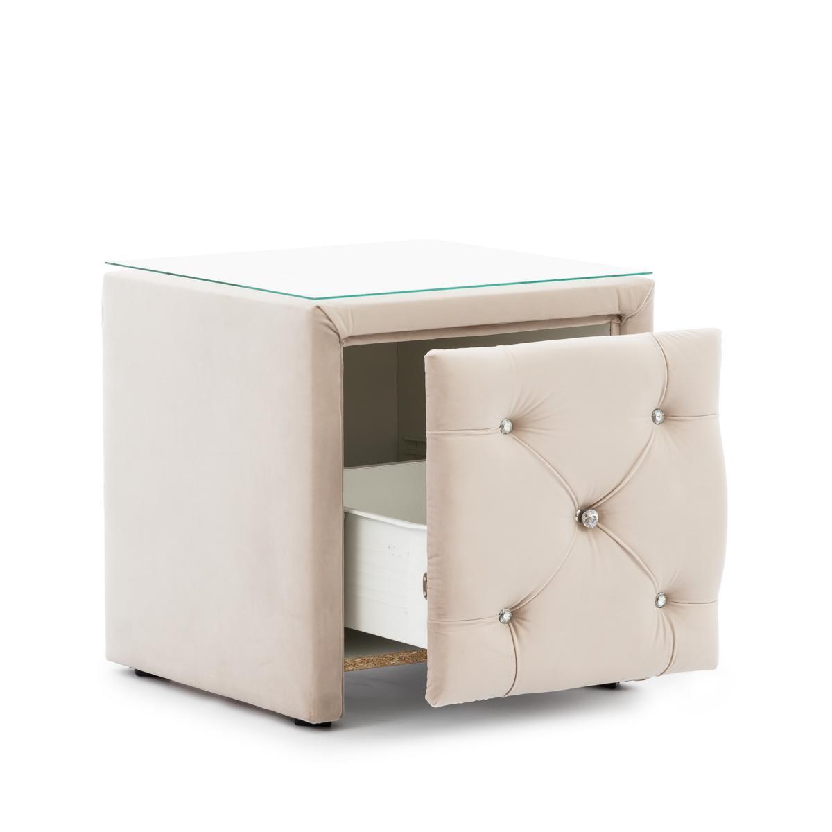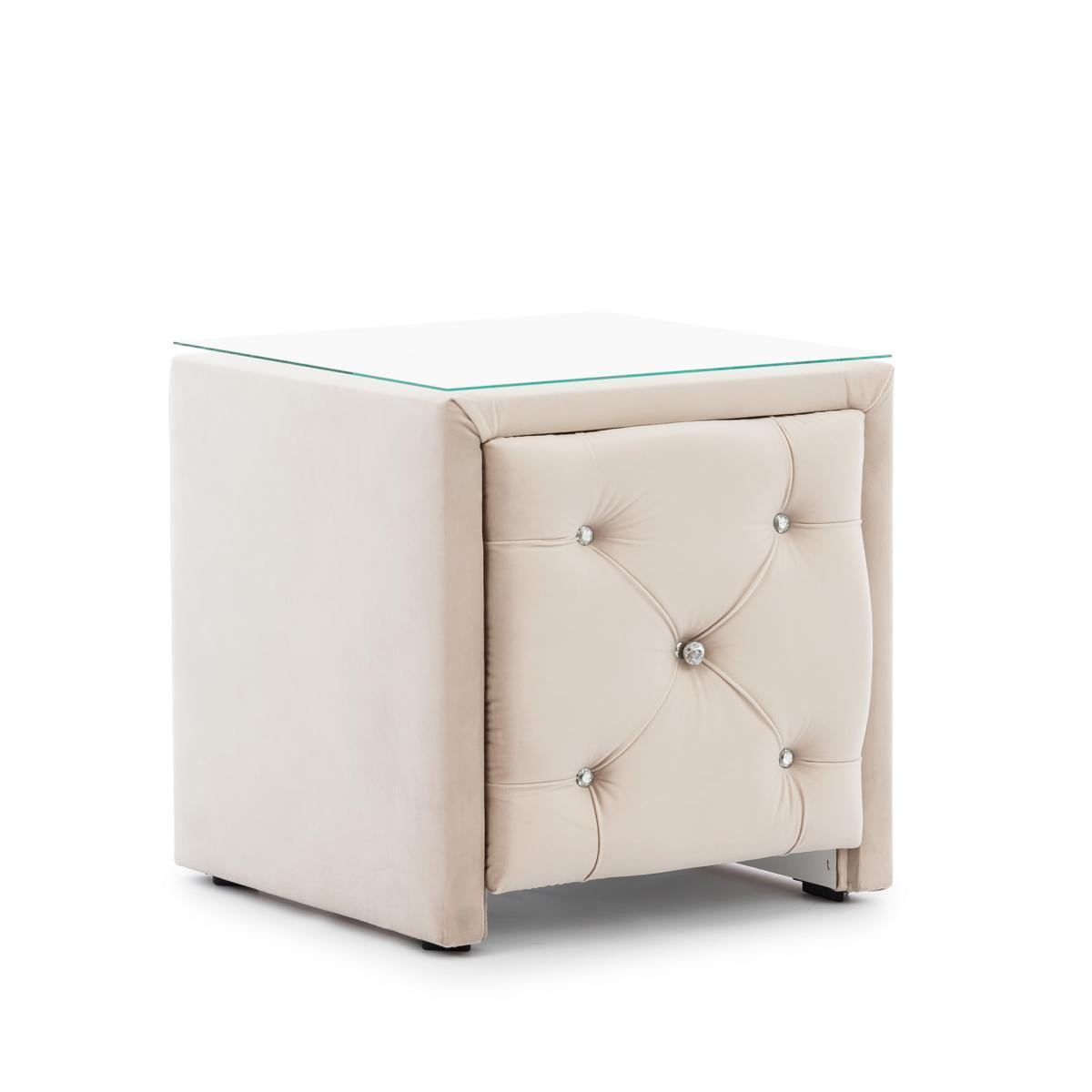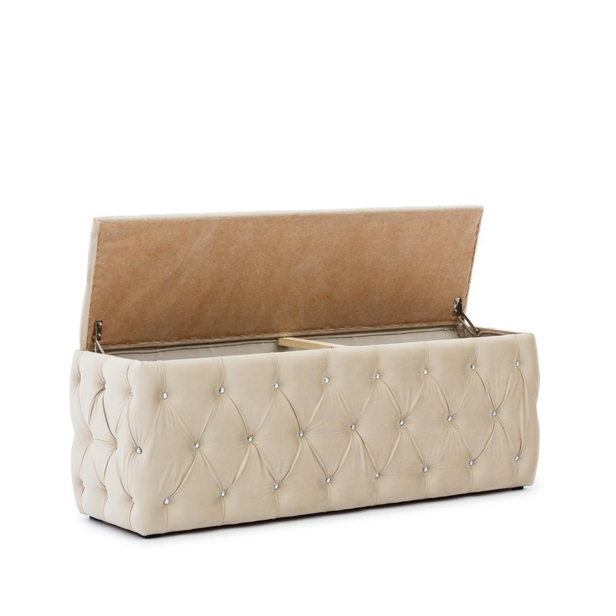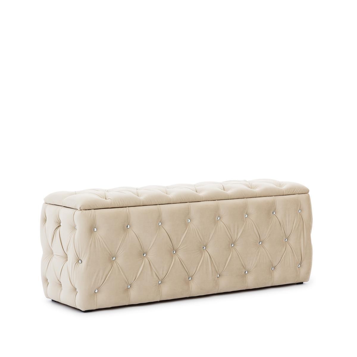 Beige set da camera Chesterfield con letto, pouf e 2 comodini.