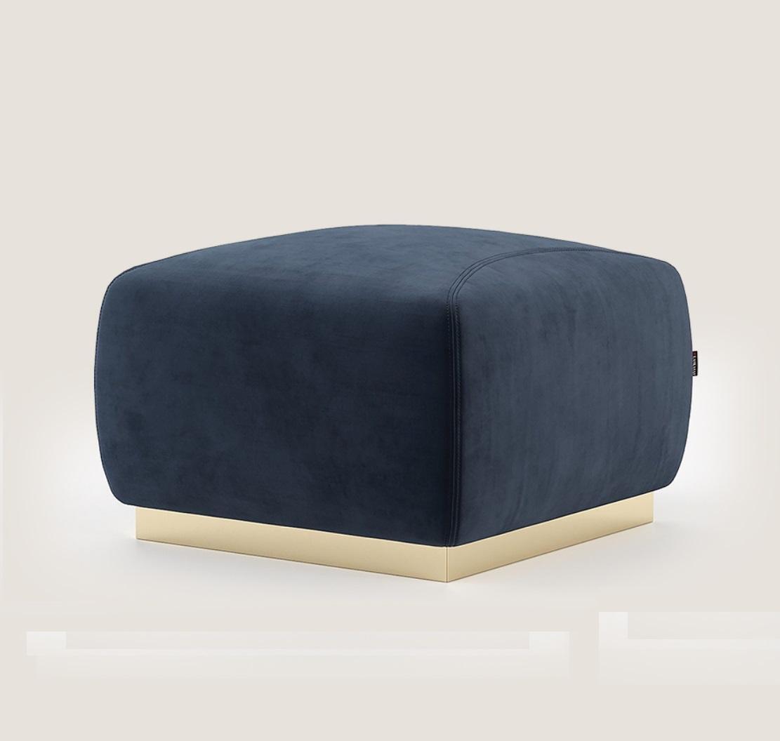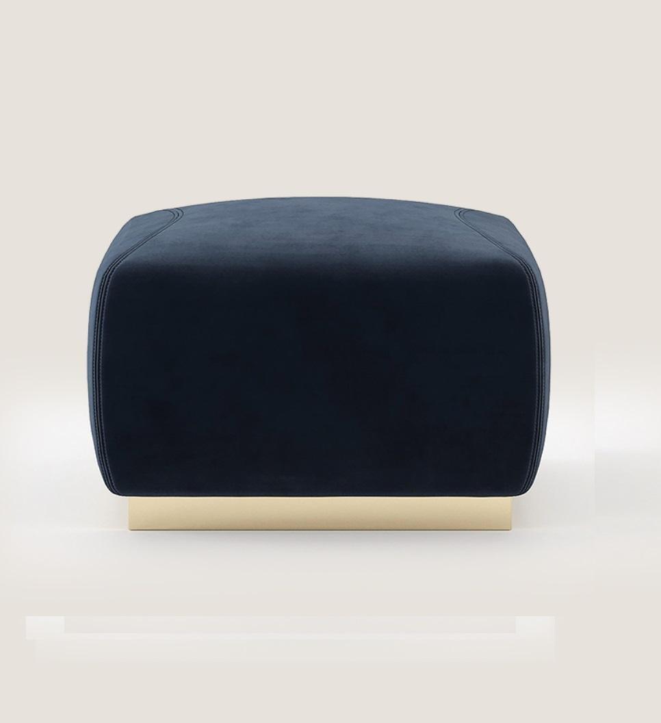Designer di lusso Sgabello blu con bordo in acciaio inox, imbottitura in tessuto, mobili nuovi.