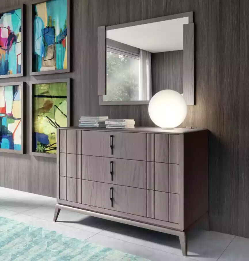Set da camera da letto di lusso, comò specchio design credenza marrone 2 pezzi in legno
