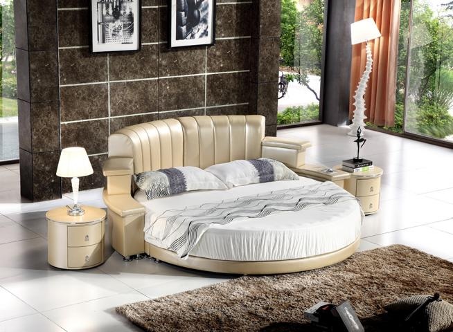 Letto rotondo con illuminazione LED Divano letto moderno Beige Design Camera da letto