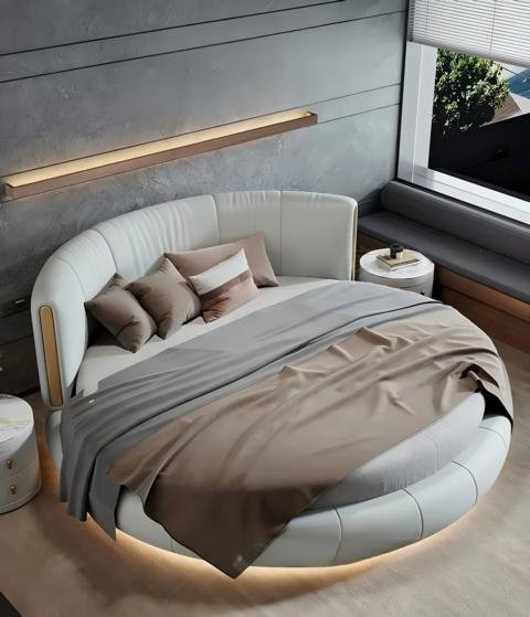 Letto rotondo esclusivo grigio beige in pelle design moderno per camera da letto | xlmobili.it