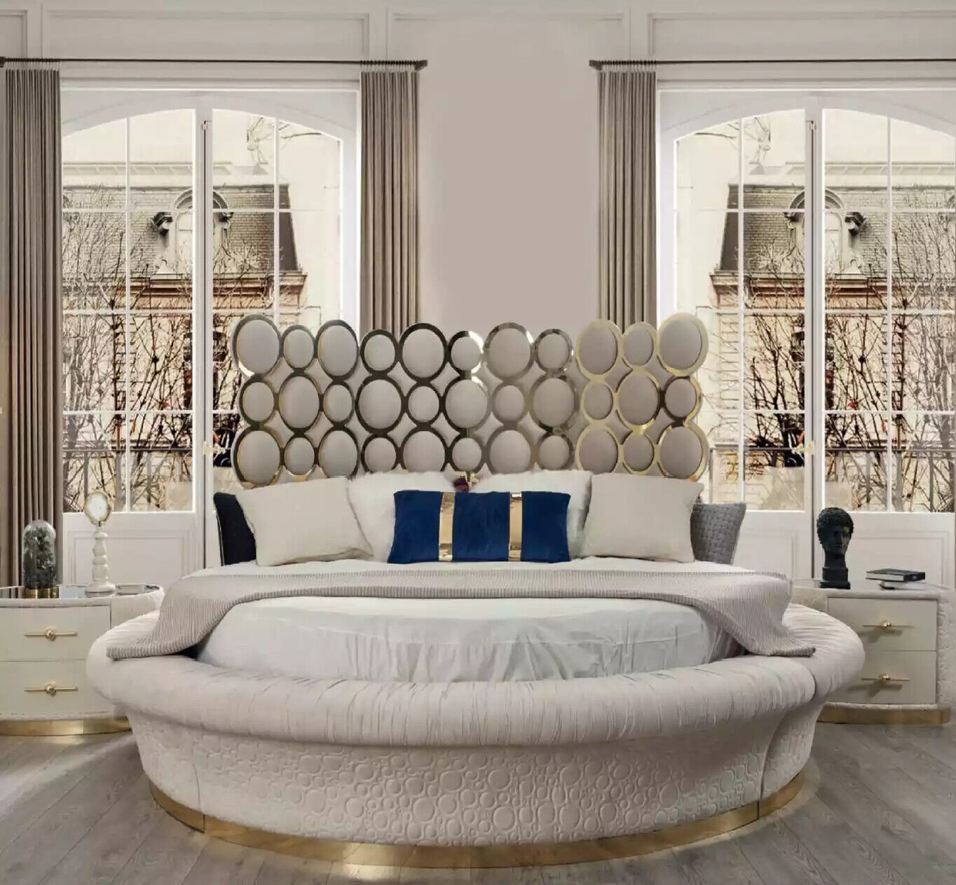 Set di lussuoso letto matrimoniale con 2 comodini, adatto per camere da letto di hotel o per coppie sposate, composto da 3 pezzi.