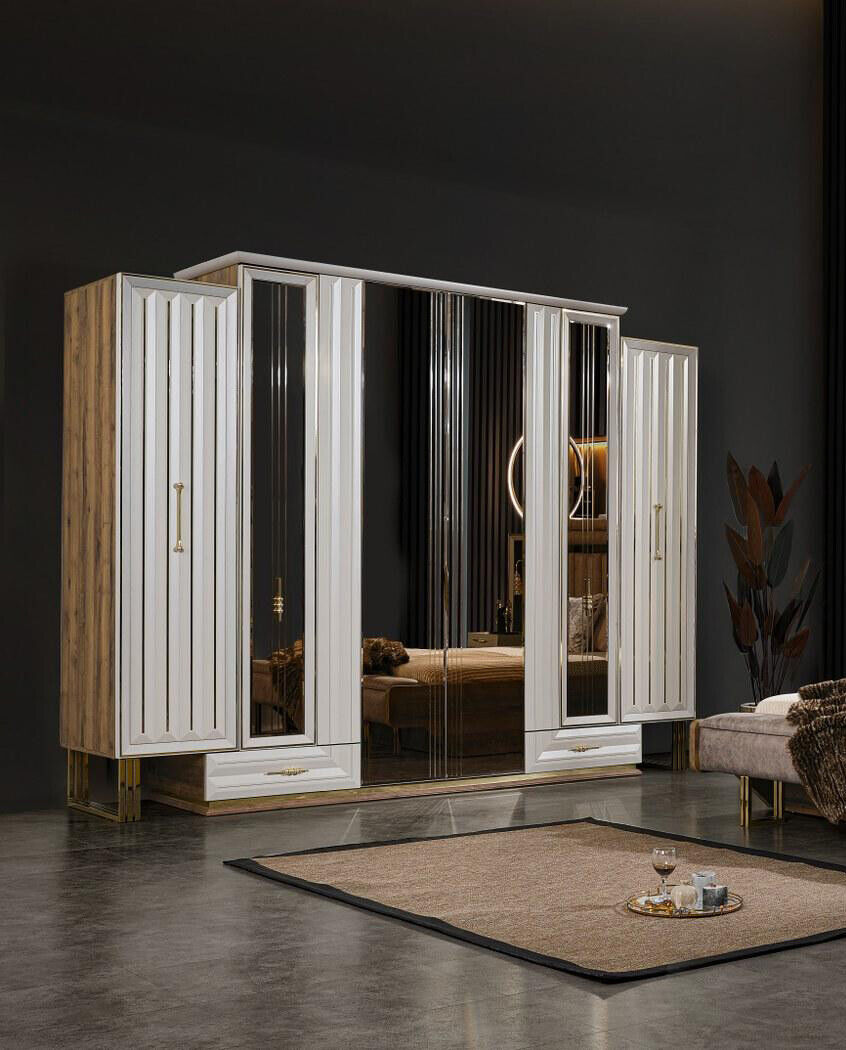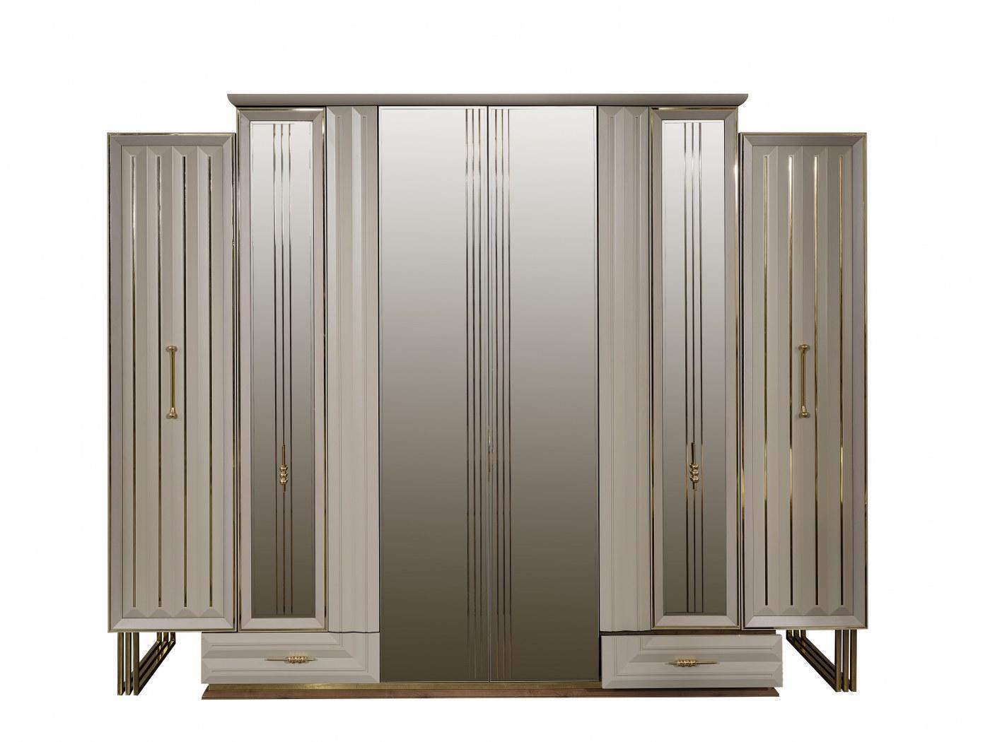Armadio guardaroba di lusso armadio in legno con specchio beige.