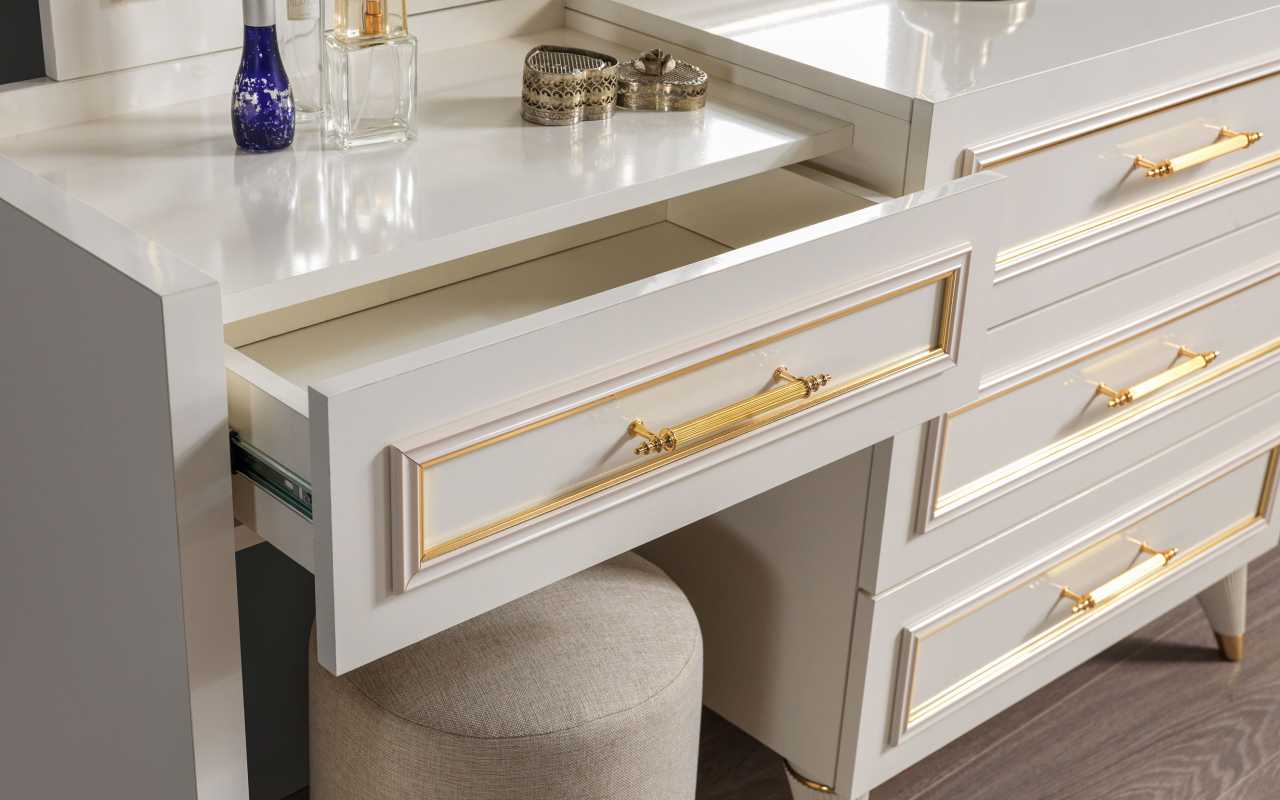 Camera da letto, set di mobili, grande letto matrimoniale, tavolo da trucco