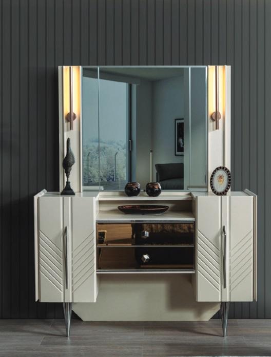 Set camera da letto, lusso, toeletta bianca, specchio