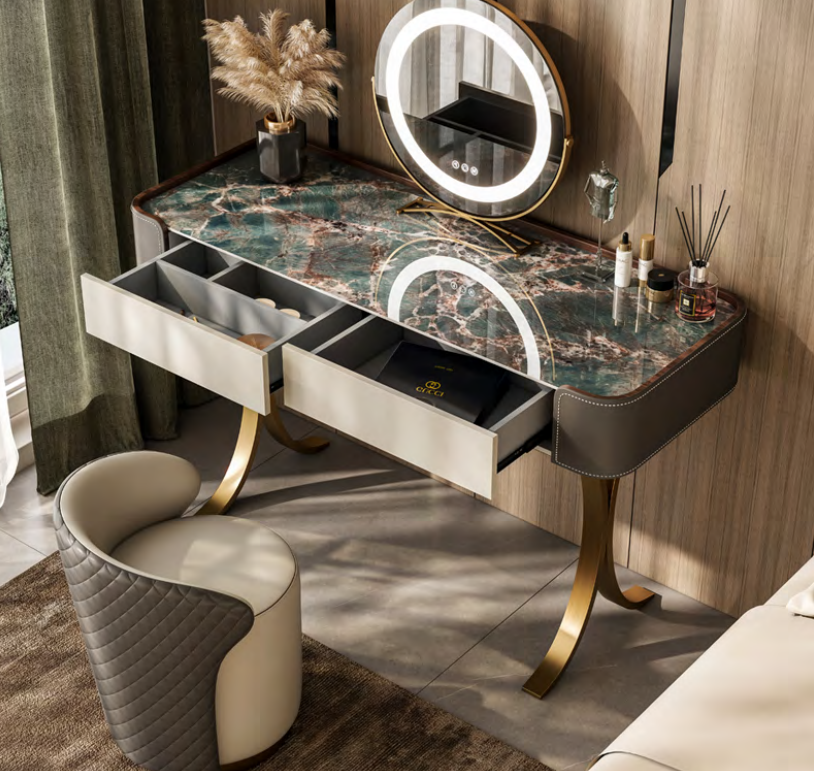 Tavolo trucco beige Designer Tavoli da toelettatura di lusso Cassetti in legno Mobili Tavolo per il trucco beige, tavoli da toelettatura di lusso, cassetti in legno, mobili