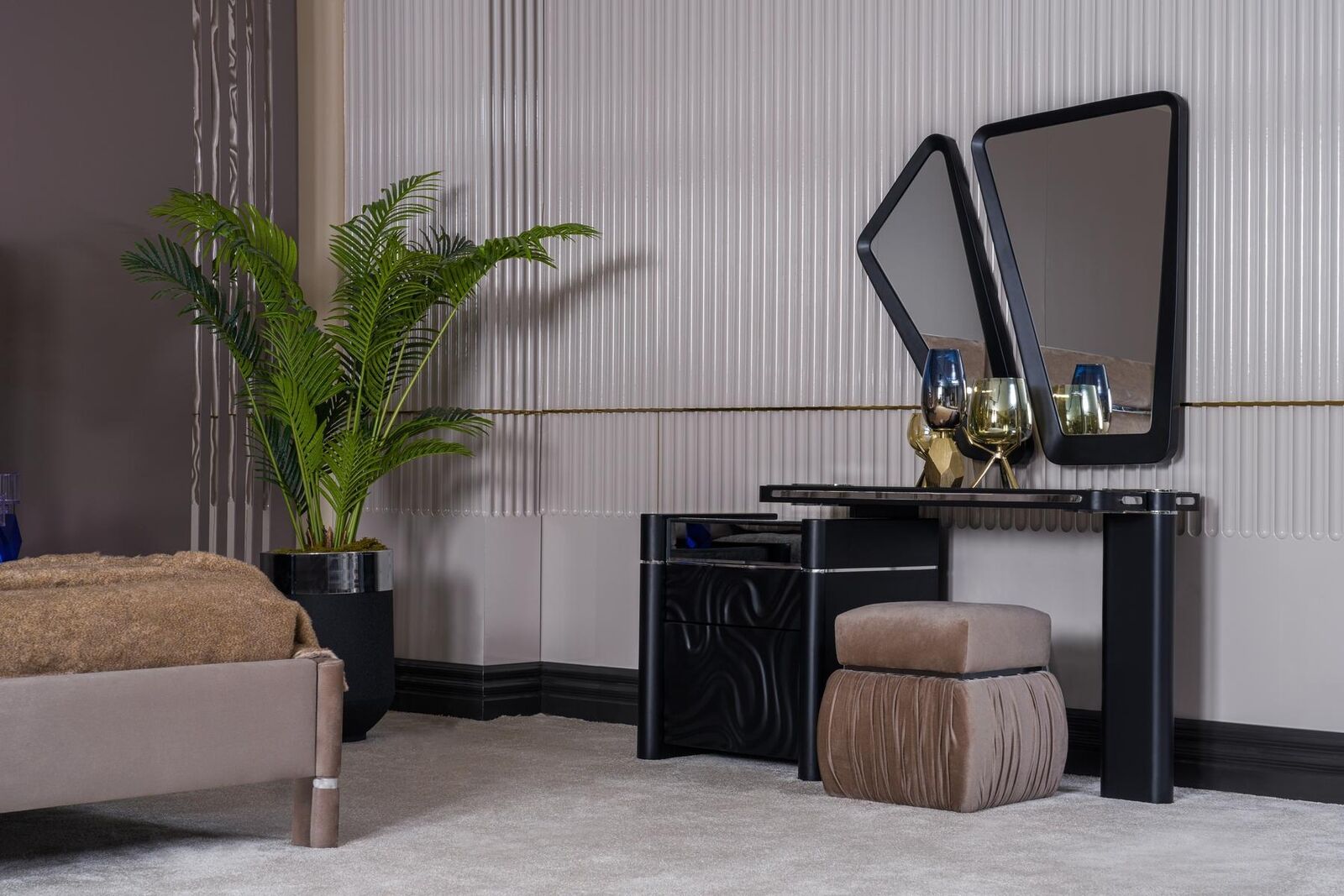 Vanity con specchio sgabello Trucco Camera da letto Design Mobili Legno 2 pezzi.