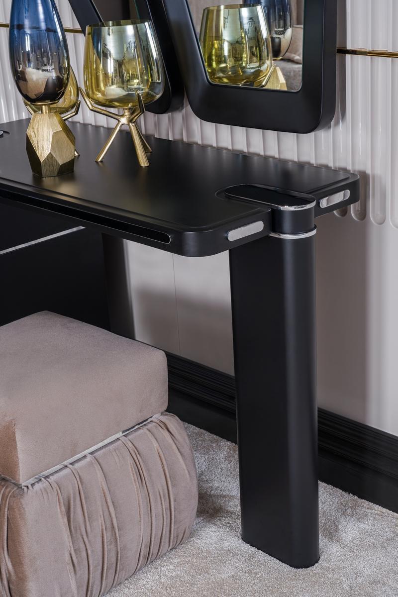 Con il Vanity con specchio sgabello Trucco Camera da letto, potrai creare un angolo dedicato alla bellezza e al relax nella tua camera. La superficie della toilette è perfetta per sistemare trucchi, profumi e accessori, mentre lo specchio ti permette di prepararti al meglio ogni giorno. Il pouf incluso aggiunge un tocco di comfort, perfetto per sedersi comodamente durante la tua routine di bellezza. Con il suo design elegante e l'alta qualità dei materiali, questo set di mobili sarà un'aggiunta preziosa alla tua casa.