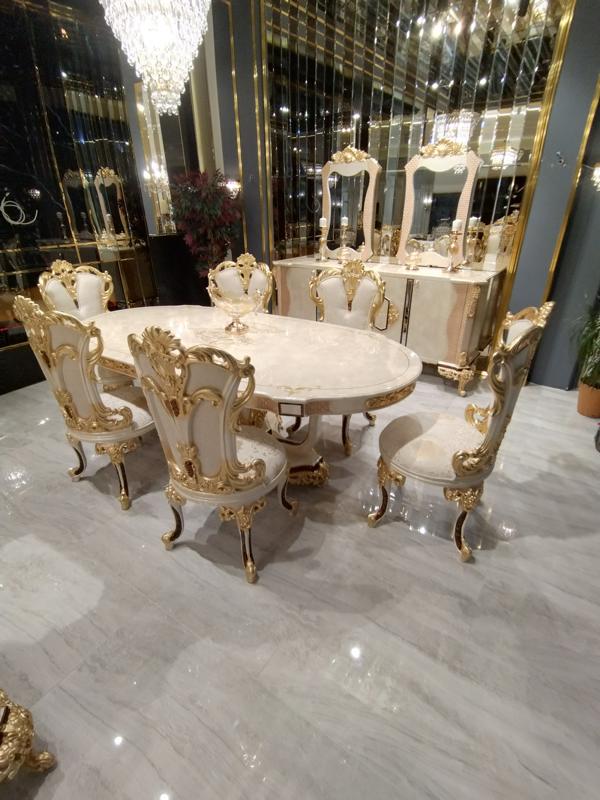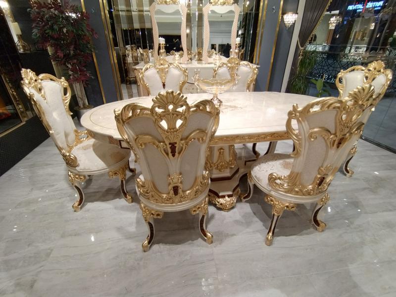 Il Set da pranzo di lusso è il complemento perfetto per arredare la tua sala da pranzo con stile ed eleganza. Questo set include un tavolo da pranzo spazioso e quattro sedie coordinate, realizzati in pregiato legno per garantire resistenza e durabilità nel tempo. Le dimensioni generose del tavolo (ca: 235 x 82 x 113 cm) offrono ampio spazio per pranzi conviviali in famiglia o con amici, mentre le sedie (ca: 55 x 55 x 120 cm) assicurano comfort e design raffinato.