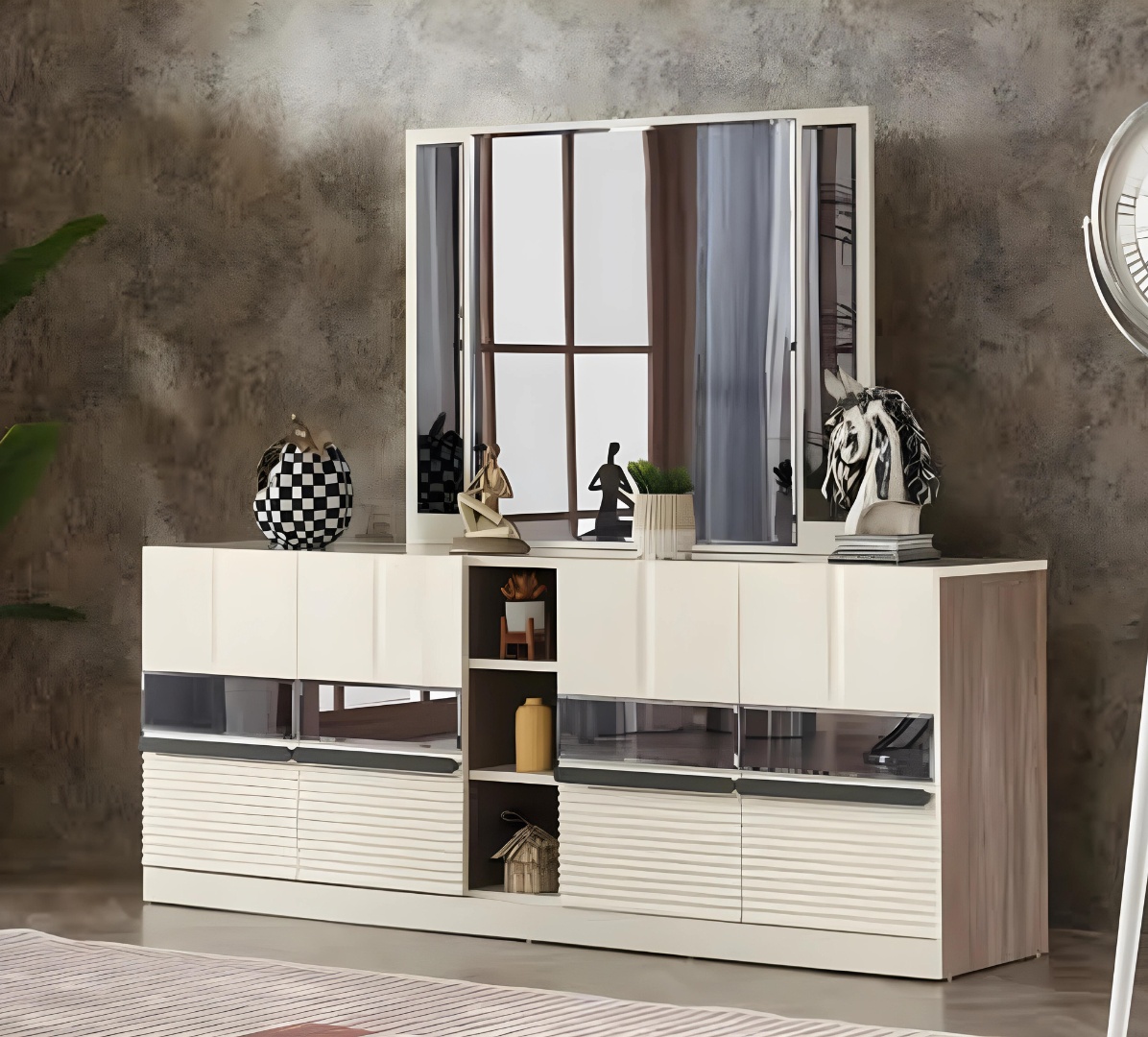 Il mobile con specchio moderno per arredamento sala da pranzo rappresenta l’apice dell’eleganza e della funzionalità. Con una finitura bianca impeccabile, questo pezzo si integra perfettamente in ambienti di lusso, conferendo un tocco di raffinatezza. Realizzato con materiali di alta qualità, il mobile non solo offre ampio spazio di contenimento, ma riflette anche la luce, creando un'atmosfera ariosa e accogliente. Perfetto per chi desidera un arredamento esclusivo, esso è il risultato di vent'anni di esperienza nel settore del design di lusso. Scegliere questo mobile significa abbracciare uno stile di vita sofisticato e senza tempo, dove ogni dettaglio è curato con passione e dedizione.